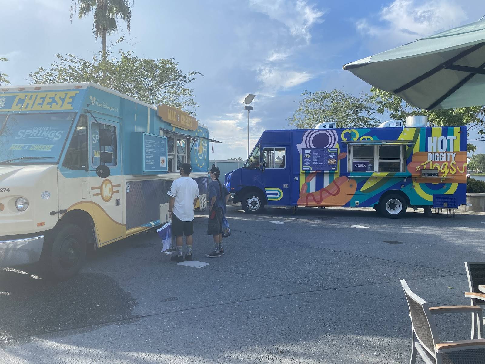 - The food trucks in the park on the West Side are operating again, with all ordering done at a central location and then heading over to the trucks to retrieve the item.