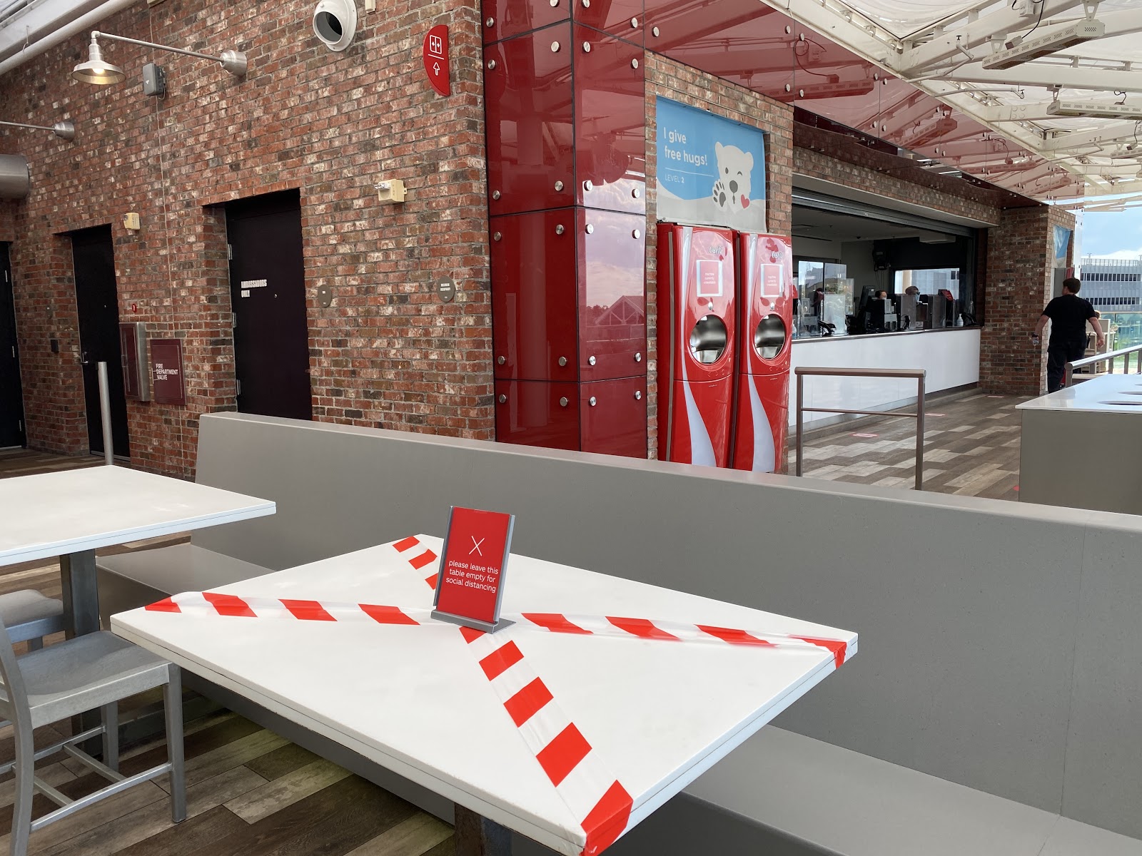 The rooftop soda bar is serving Guests, but any self-serve options are unavailable at this time.