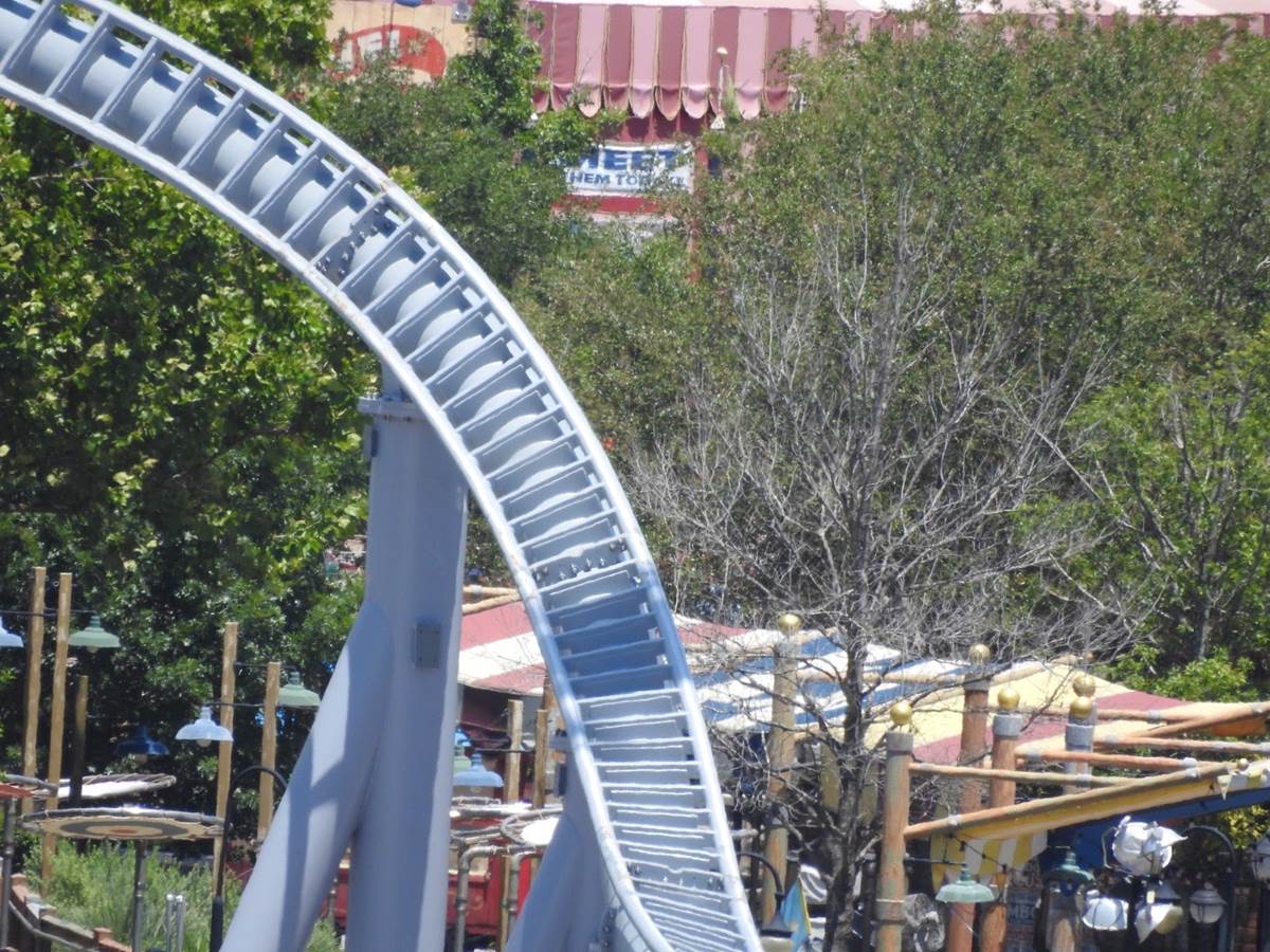 Magic Kingdom won’t reopen until July 11th, so we weren’t able to get as close as we usually do to the site, but we are still able to see some cool shots of the track and the main show building, with the side facing Disney’s Contemporary Resort still open.