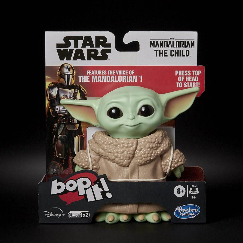 Hasbro also took the opportunity to announce The Mandalorian The Child Bop It!, in which “Players listen to commands made in the voice of the Mandalorian while the giggling bounty makes sounds as you play.” This item will be available exclusively at Wal-Mart this fall.