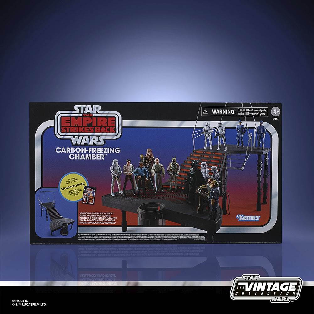 Next is a series of toys celebrating the 40th anniversary of The Empire Strikes Back, the first of which is this very cool playset depicting the Bespin Carbon-Freezing Chamber, which comes packaged with a new Stormtrooper action figure on a throwback-style Kenner Empire card.