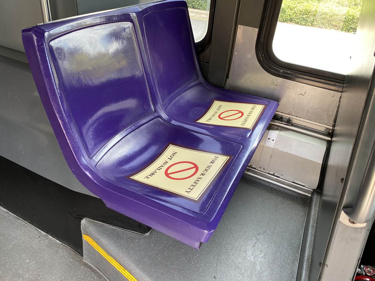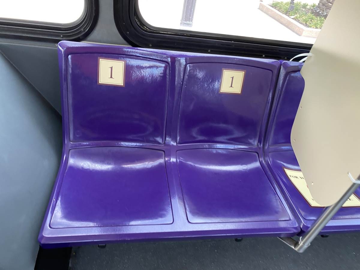 - Once on board, guests will find several seats marked off to not be used, with the remaining seats numbered for seating assignments.