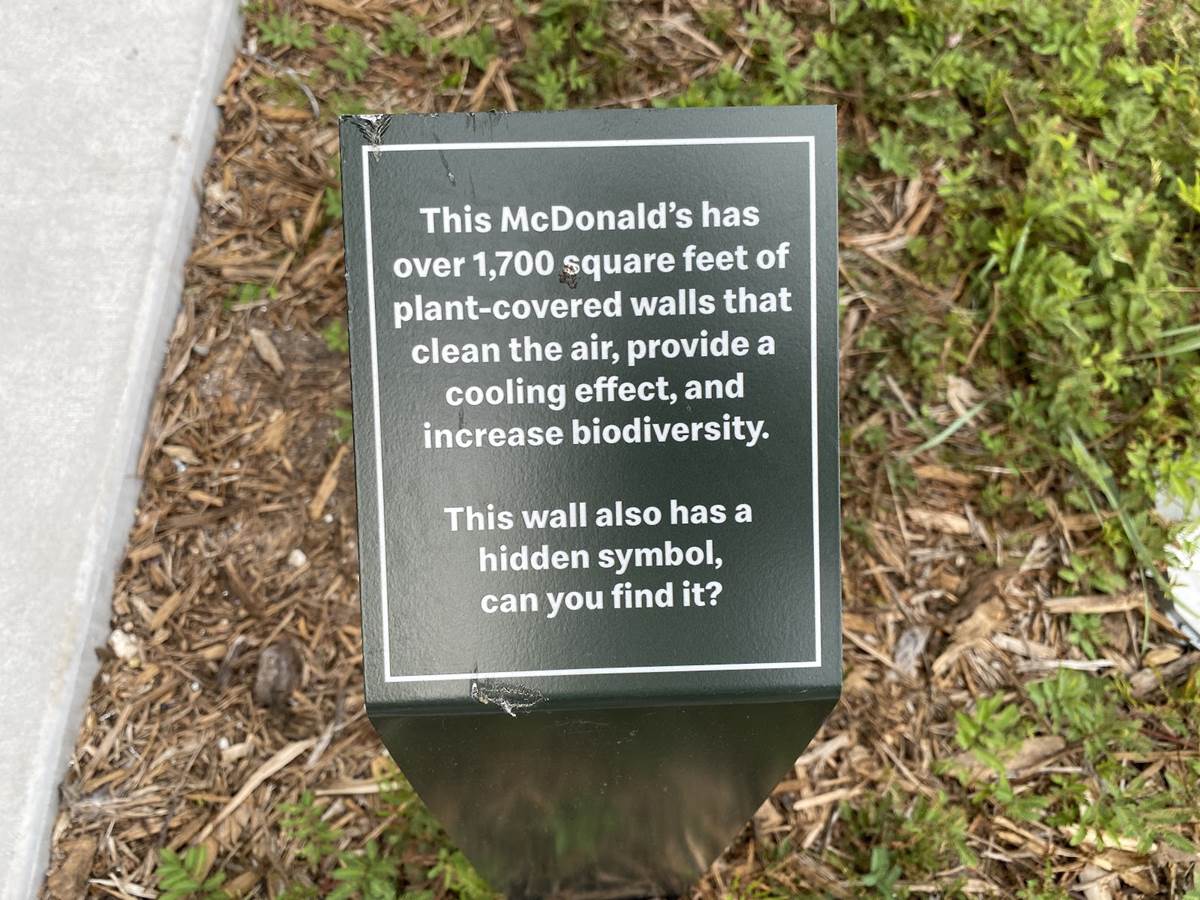 This is the third version of this same McDonald's, which originally looked like a giant Happy Meal and was remodeled a decade ago to look more like a standard McDonald's restaurant. This latest remodel is environmentally conscious in a variety of ways, witch information about the various components available for Guests to explore.