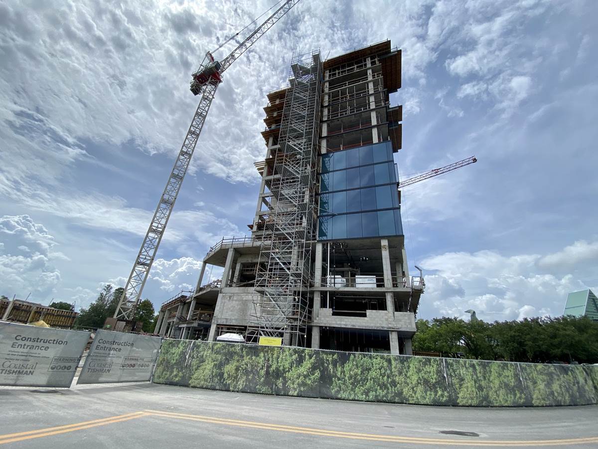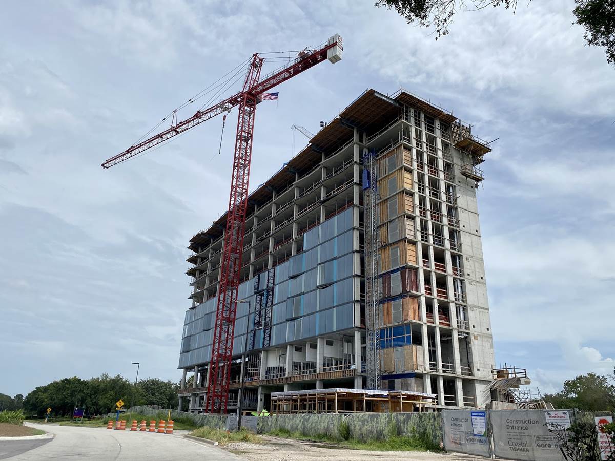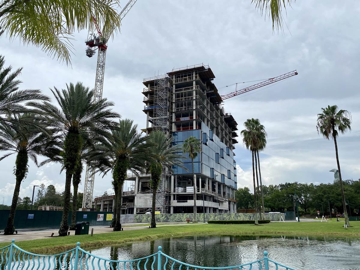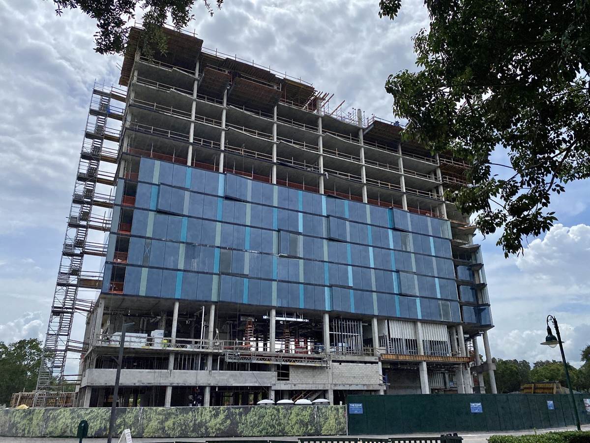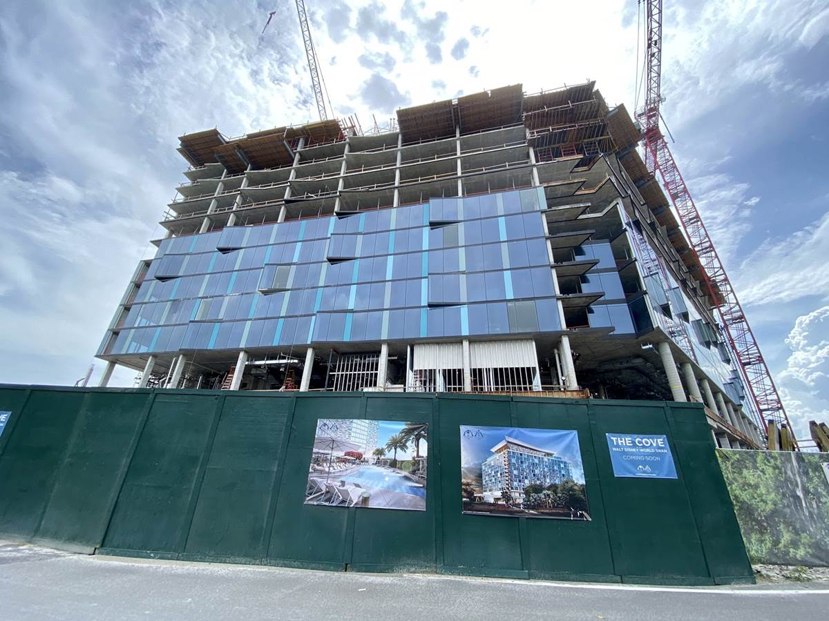 Today we got a look at the construction progress on The Cove, a third tower being added to the Walt Disney World Swan and Dolphin. The project was first announced in 2018 with an expected opening in 2020, although no opening date has been announced.