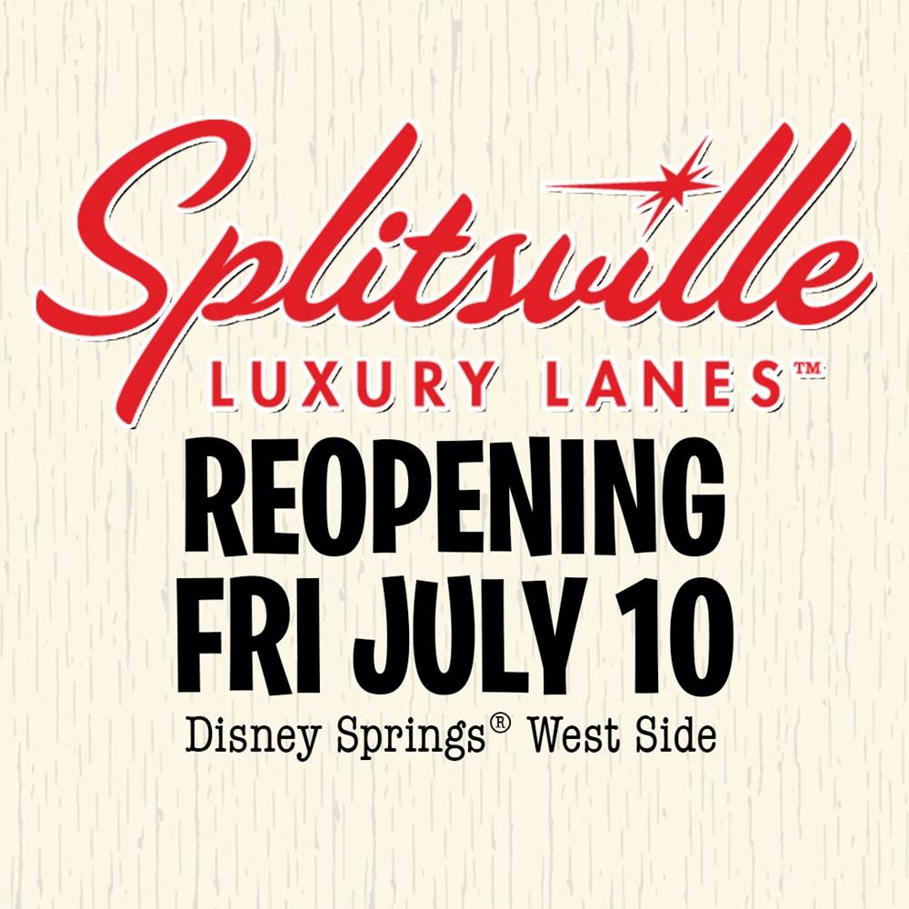 - Disney Springs has announced on Twitter that Splitsville Luxury Lanes will be reopening on July 10th at 4pm.