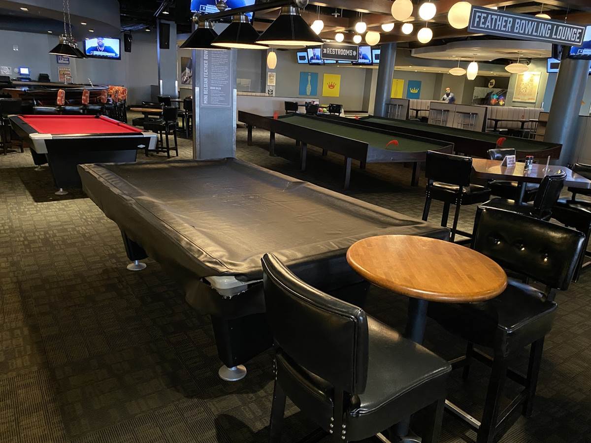 Bowling isn’t the only recreational activity offered at Splitsville. Guests can play pool and feather bowling, with select tables blocked off to prevent Guests from being too close together.