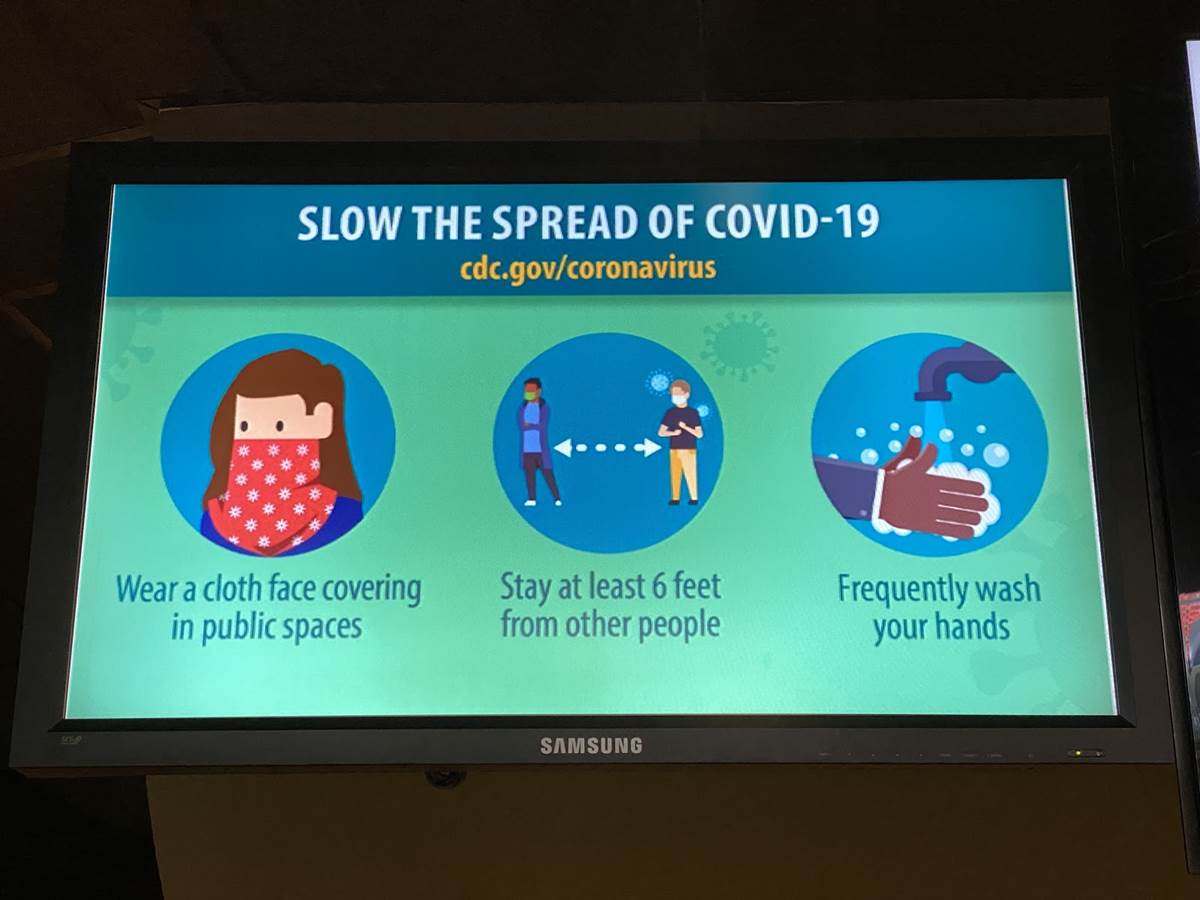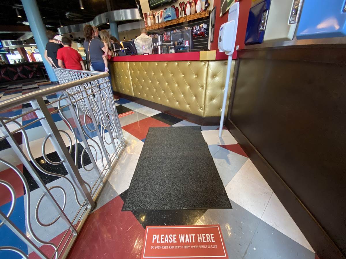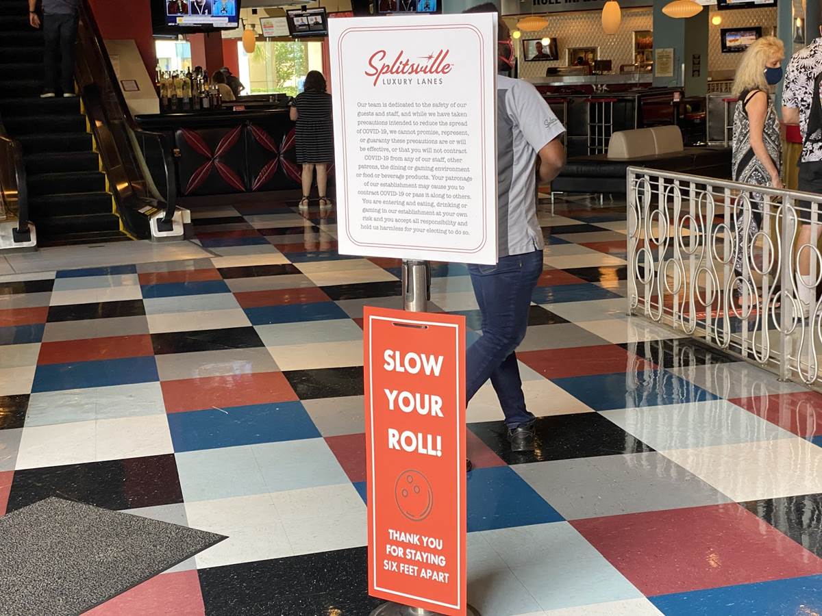 Guests are reminded often to keep six-feet apart from other parties through signage and updates on the TV screens.