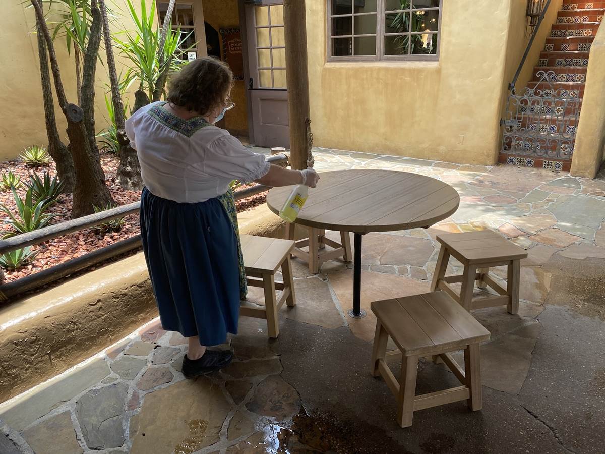 Cast Members frequently sanitize high touch surfaces and clean dining tables after every use.