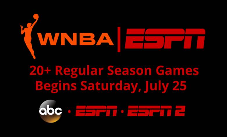 - ESPN’s WNBA schedule will open on July 25 with a double-header.
