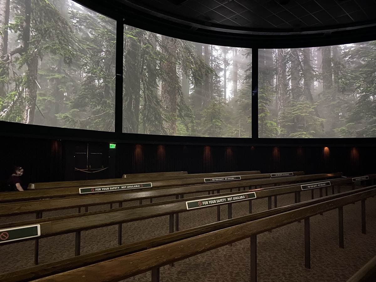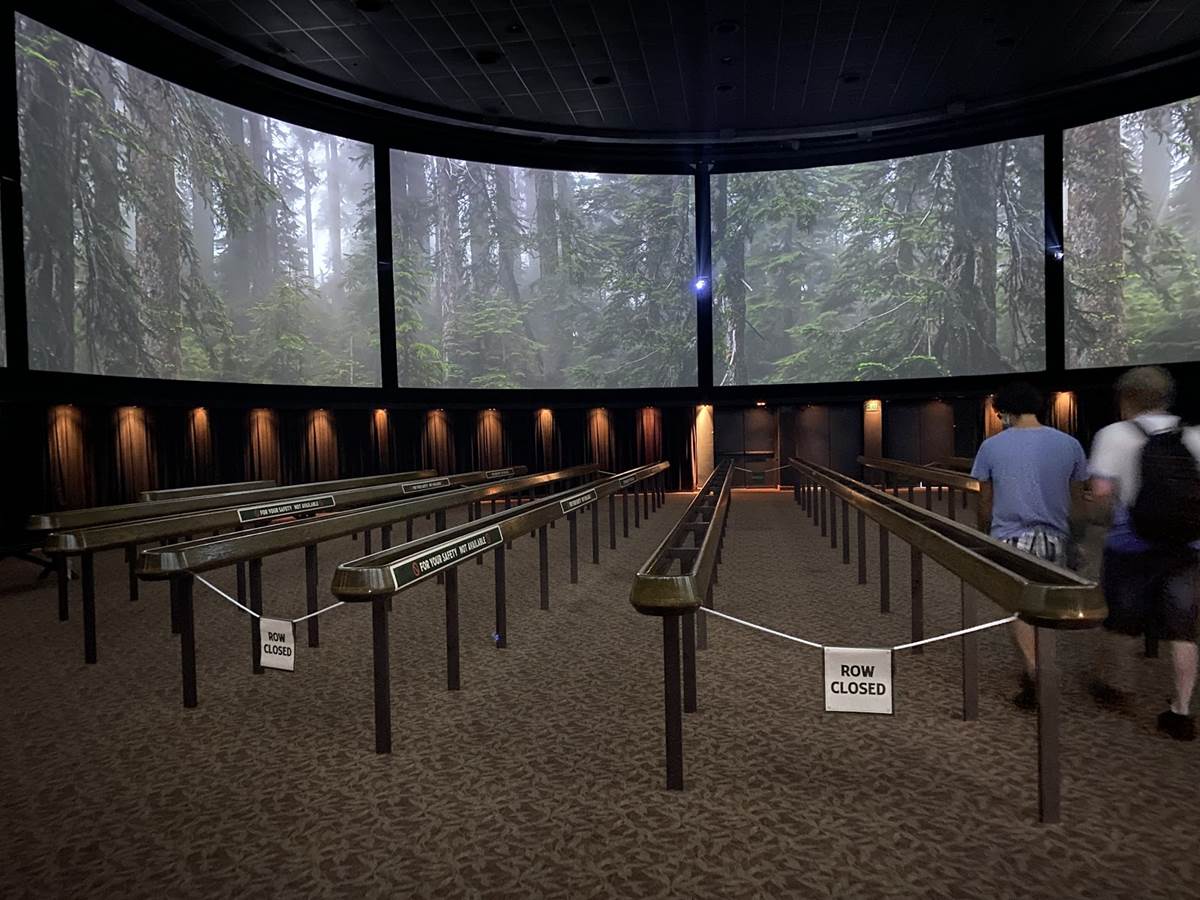 Canada Far and Wide has group markings in the holding area. Once inside the CircleVision theater, every-other-row has been blocked off and groups stand between the no stand zones, similar to the same blocked areas in other theater experiences already open.