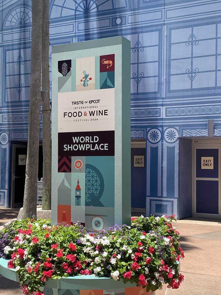 World Showplace is home to several Taste of EPCOT experiences, with social distancing tables to enjoy your snacks in an air conditioned environment.