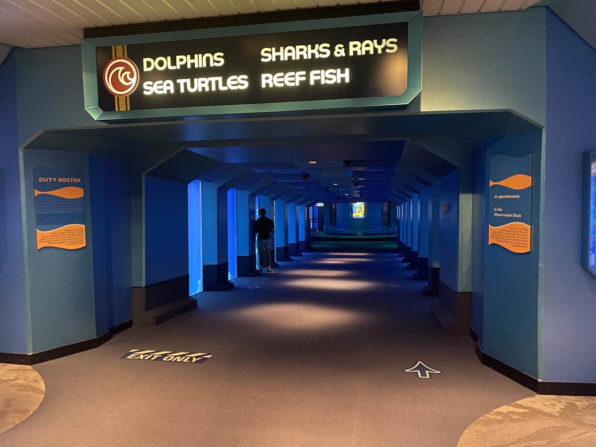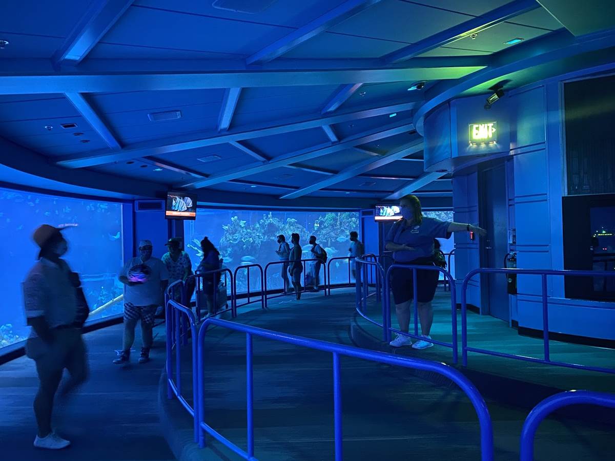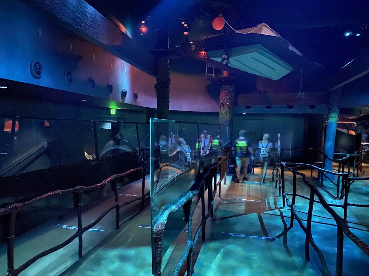 The entrance to the attraction inside The Seas with Nemo and Friends also has newly added plexiglass dividers as Guests “Just keep swimming” through the queue.