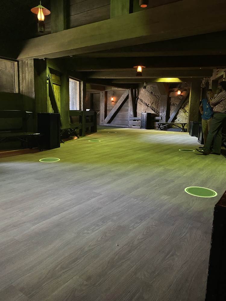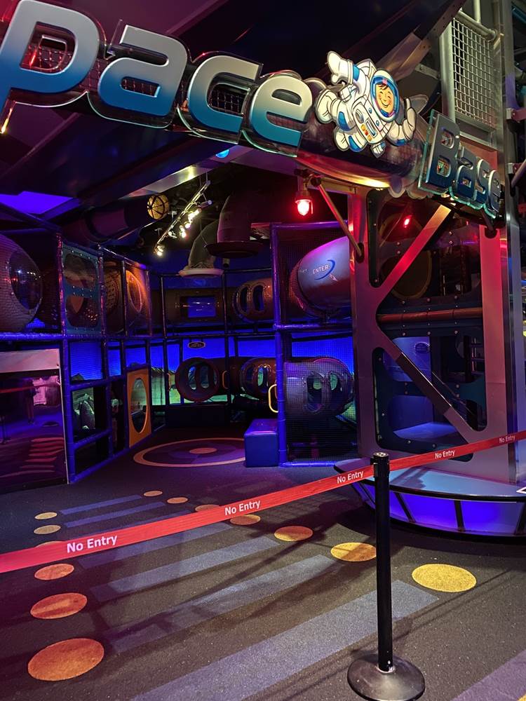 One of EPCOT’s newest attractions, Awesome Planet, includes a social distance queue through the wall carpet holding area.