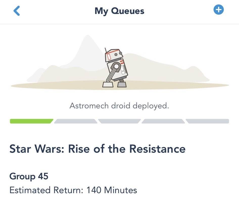 - Once logged in, select “Star Wars: Rise of the Resistance Virtual Queue” on the home screen. Guests will be able to view the current status and next steps for joining the virtual queue.