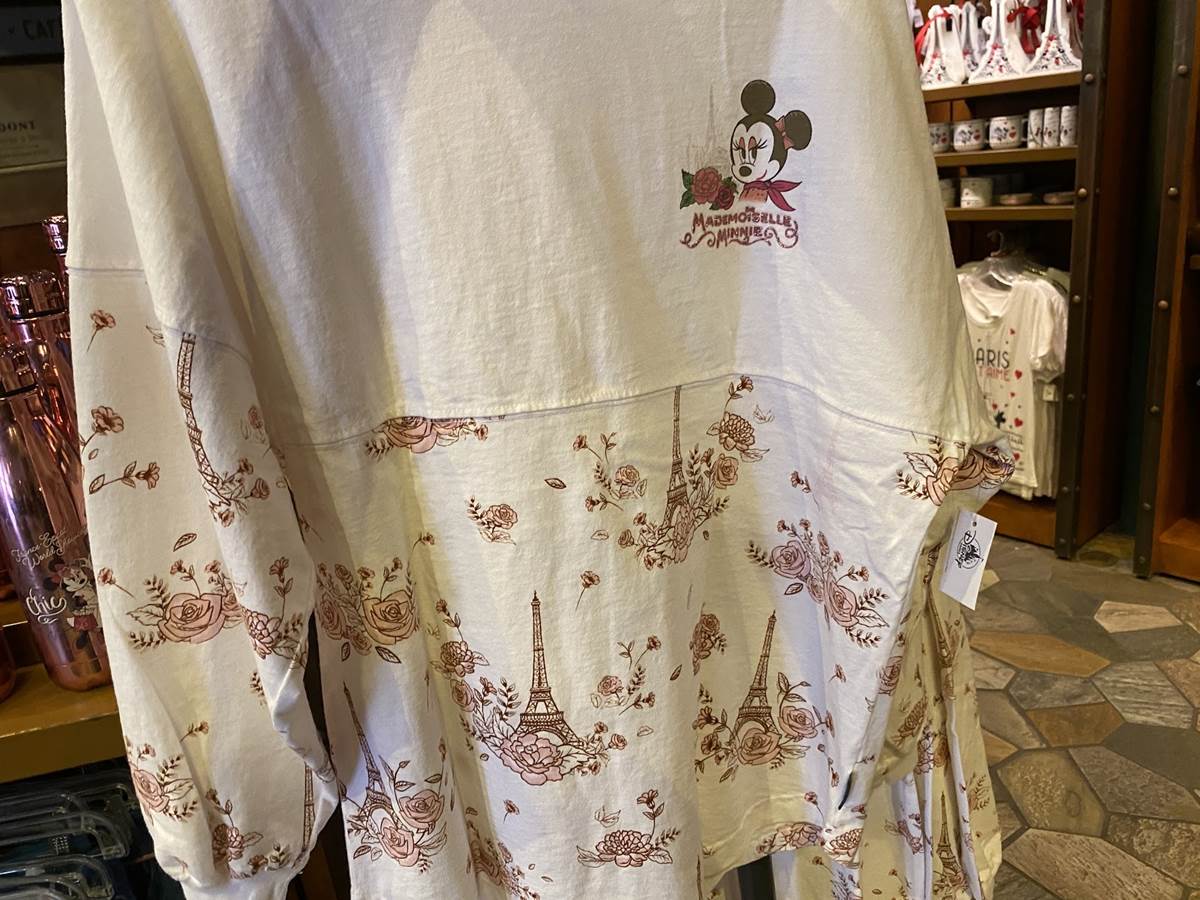 What goes great with Macaron Mouse Ears? How about a macaron Eiffel Tower long-sleeve shirt where the delectable cookies appear on serving trays at two levels of the famous Paris icon. This shirt retails for $39.99.