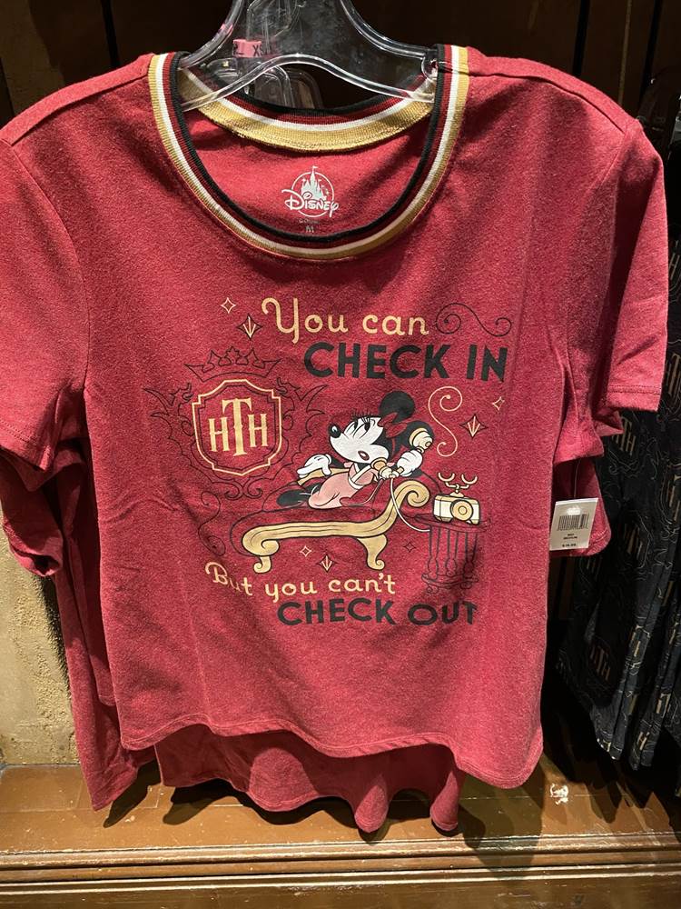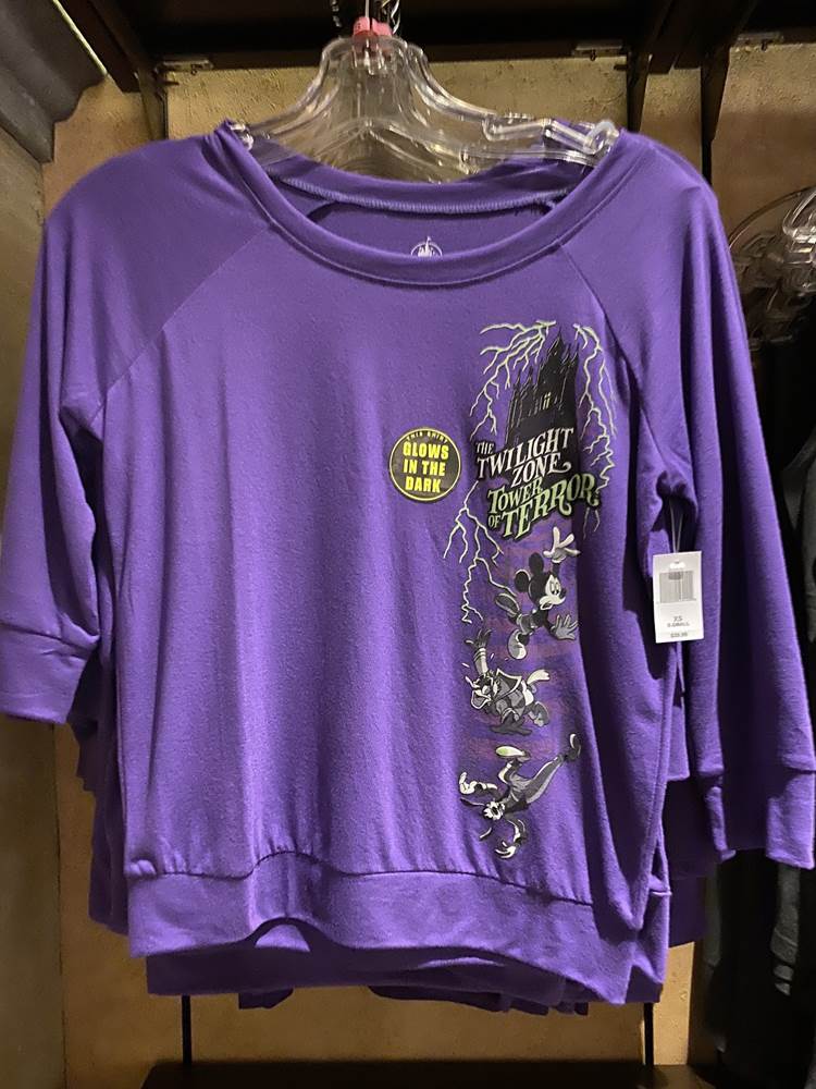 The Hollywood Tower Hotel even has new apparel with Disney characters, like this purple mid-length sleeve top for $39.99 with glow-in-the-dark accents.