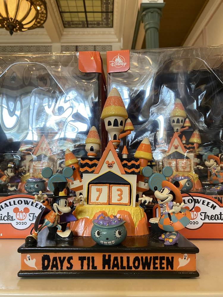 Of course, this is all celebrating Halloween, and we’re counting the days. Are you? You can easily with this candy-corn castle themed countdown display featuring Mickey and Minnie for $49.99