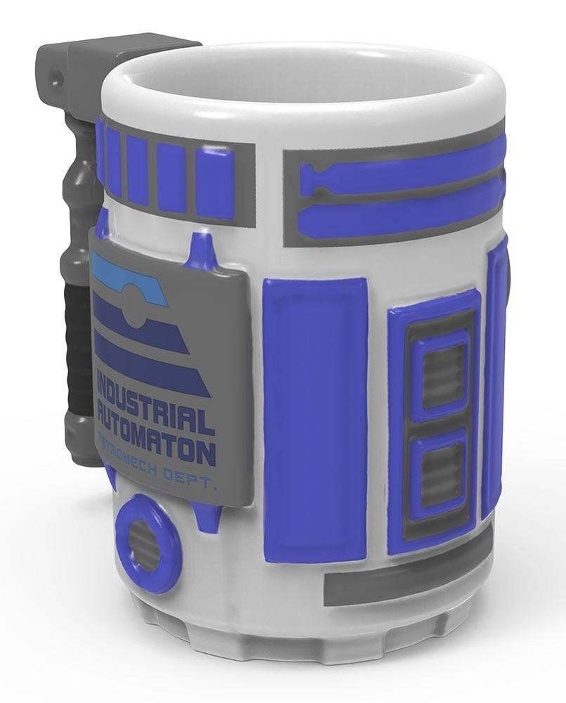 Next up are these sculpted mugs from Zak inspired by Oga’s Cantina and Droid Depot-- there’s a Jawa standing atop an astromech droid and one that looks an awful lot like R2-D2’s blue-and-white torso.