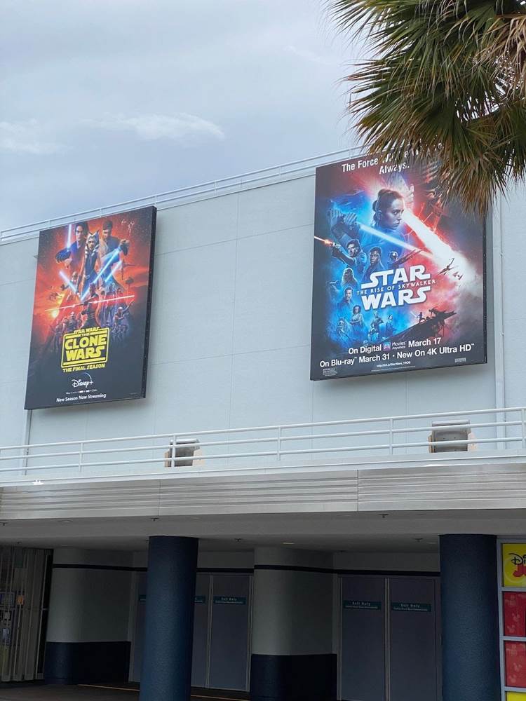 - The most noticeable billboard that is missing is the single Voyage of the Little Mermaid one that hung behind the theater’s marquee. The other two on the side of the soundstage most recently were Star Wars themed, leading up to the Star Wars: Launch Bay attraction at the other end of the courtyard which is now used as a guest relaxation zone. These two change on a rather frequent basis, formerly advertising new Star Wars productions, Disney Junior productions, or back when the building was primarily used for Walt Disney Feature Animation, the latest animated film to be released.