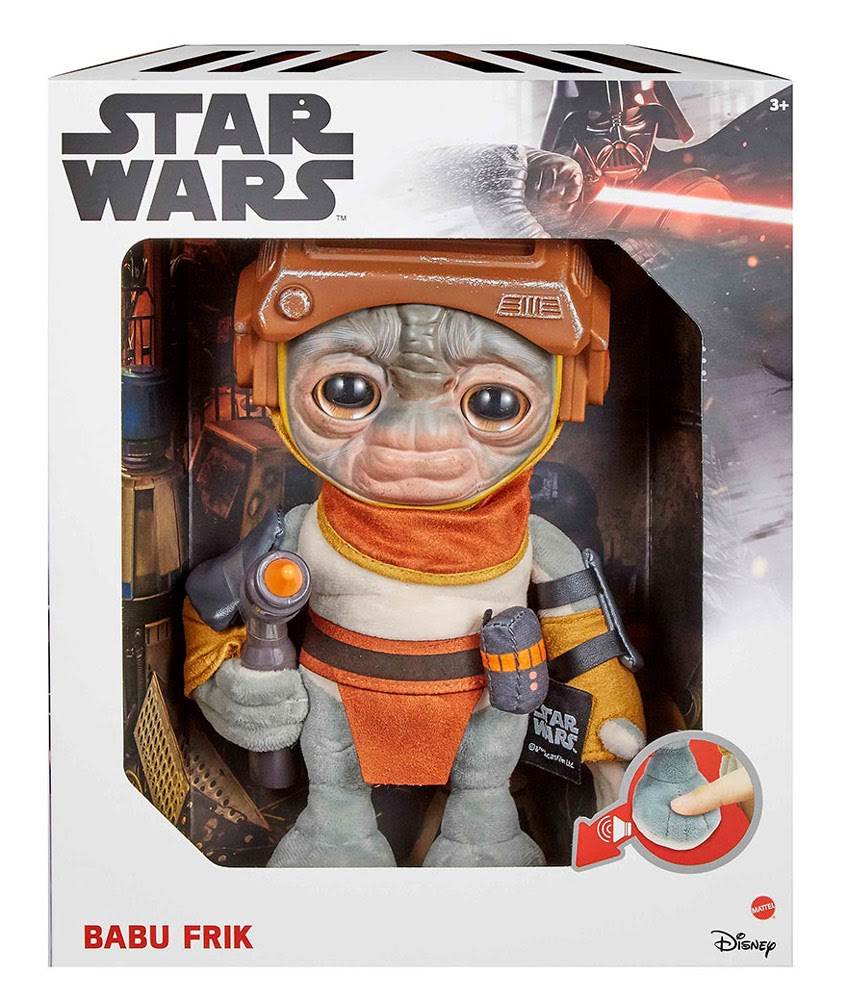 - This new talking plush captures the essence of the character with six voice clips from the film, including his simple introductory line: “Hello, I Babu Frik.”