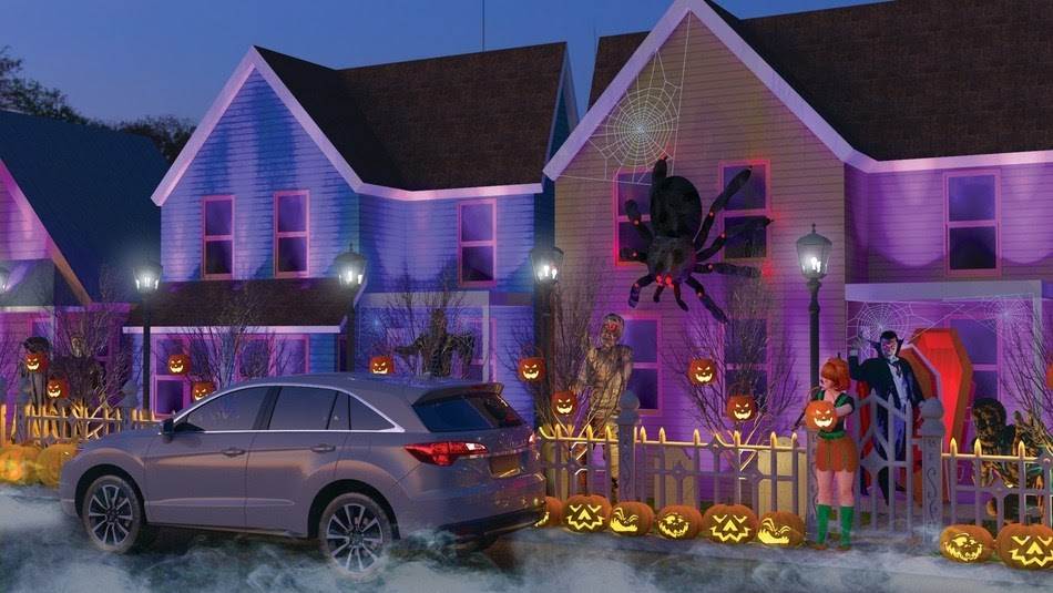 - Costumed and safely masked actors will provide in-vehicle "door to door" trick-or-treating on a two-street, built-out neighborhood, with plenty of wrapped candy and decorations for the kids.