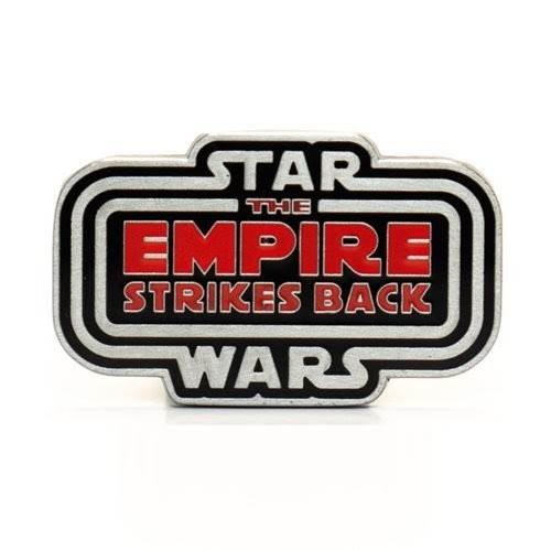 “Wear this pin with pride as you pay homage to the 40th anniversary of The Empire Strikes Back. Made of metal and enamel filled, this Entertainment Earth Exclusive measures approximately 1 3/4-inches wide x 1-inch tall and presents the movie logo in red, black, and silver.”