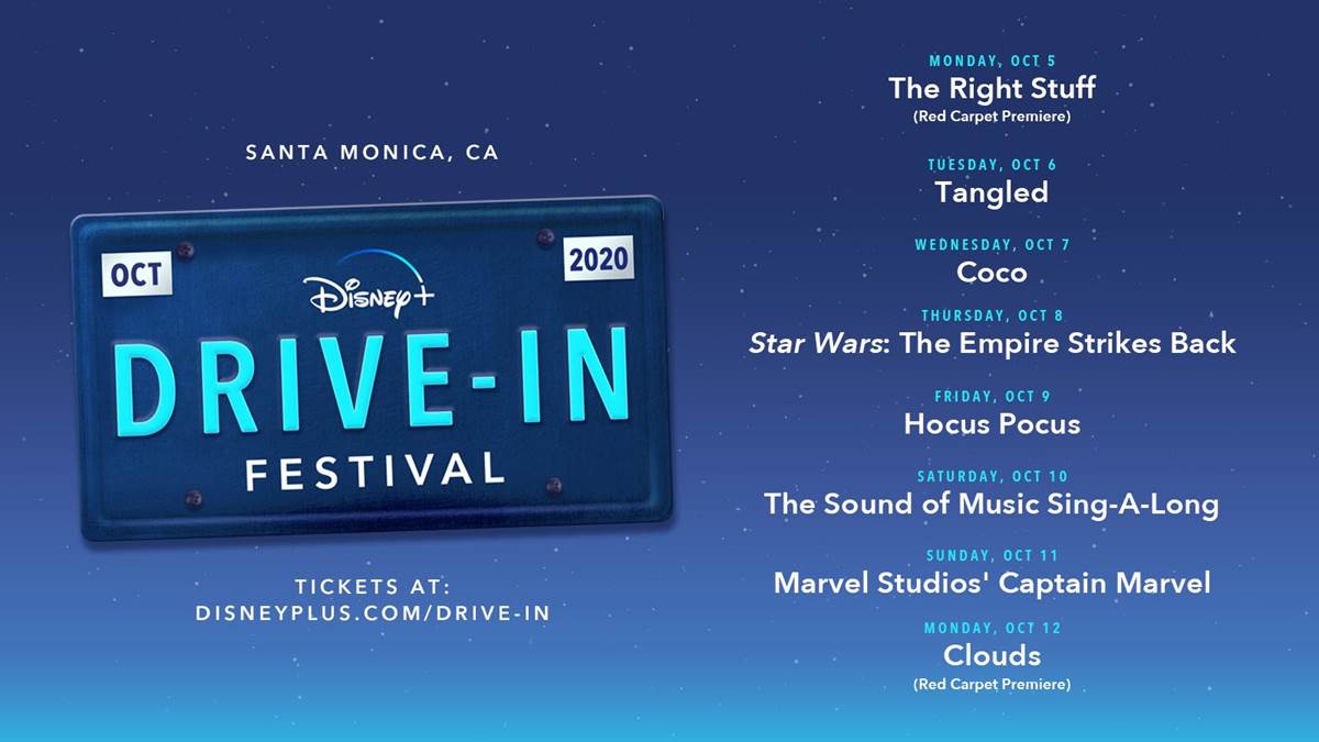 - Disney+ is inviting fans to see some of their favorite films on the big screen with the Disney+ Drive-In Festival in Santa Monica, CA October 5th-12th.
