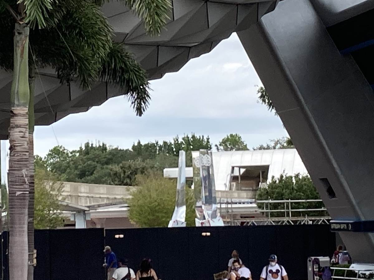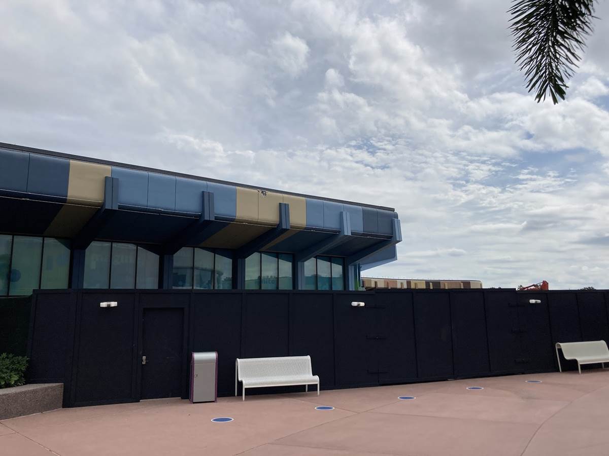 The new restaurant that we’ve been waiting for as part of an expansion to the Mission: SPACE pavilion, Space 220, is nearing completion, with these walls currently covering the marquee and entrance to the restaurant that will take us 220 miles above the Earth and into a space station for a dining experience that can only be described as “out of this world.”