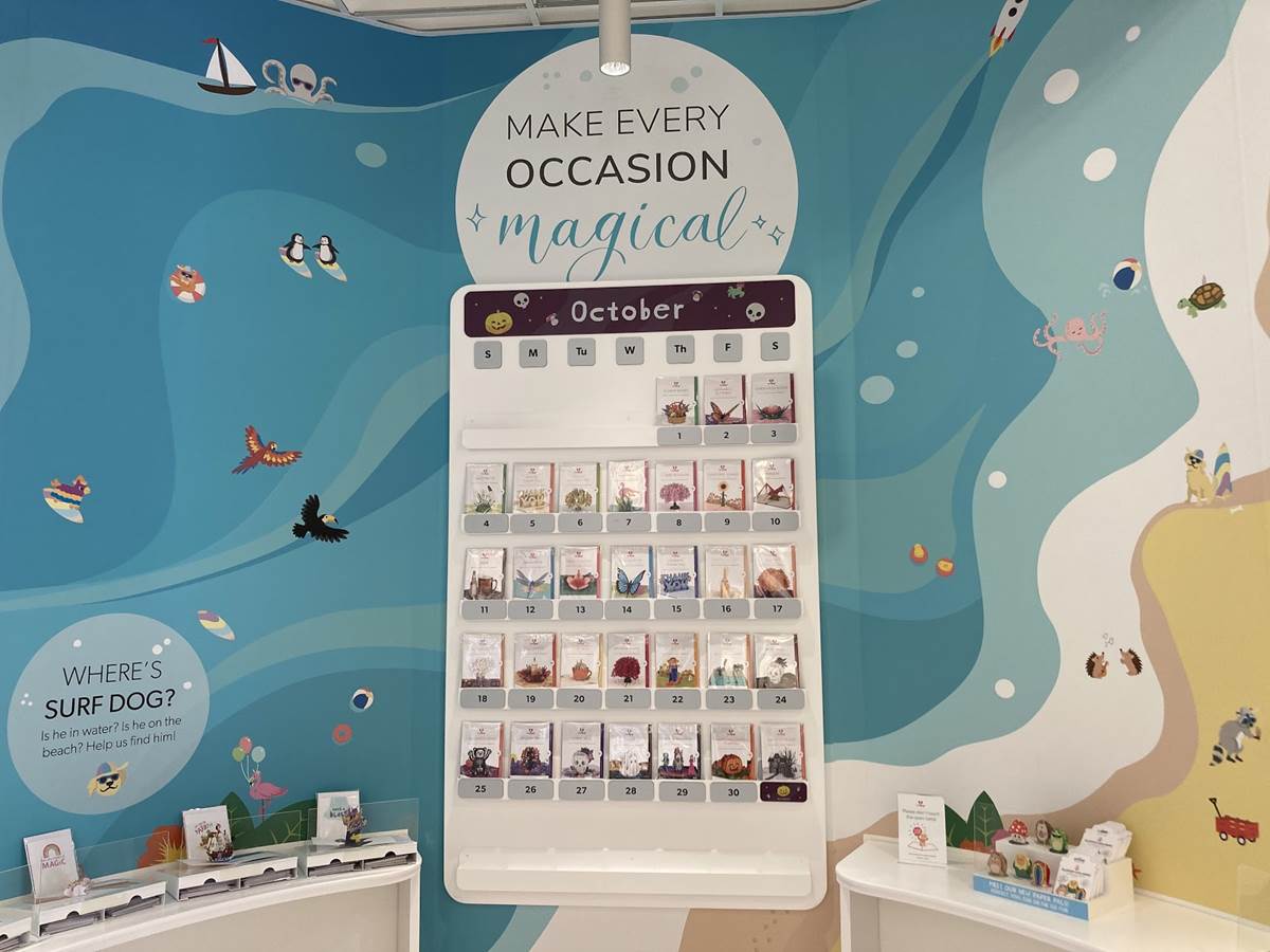 With cards perfect for every season and every occasion, the store is also perfectly prepared to make every day special. They have a card calendar on display and a wall that celebrates the colors and themes of each season.