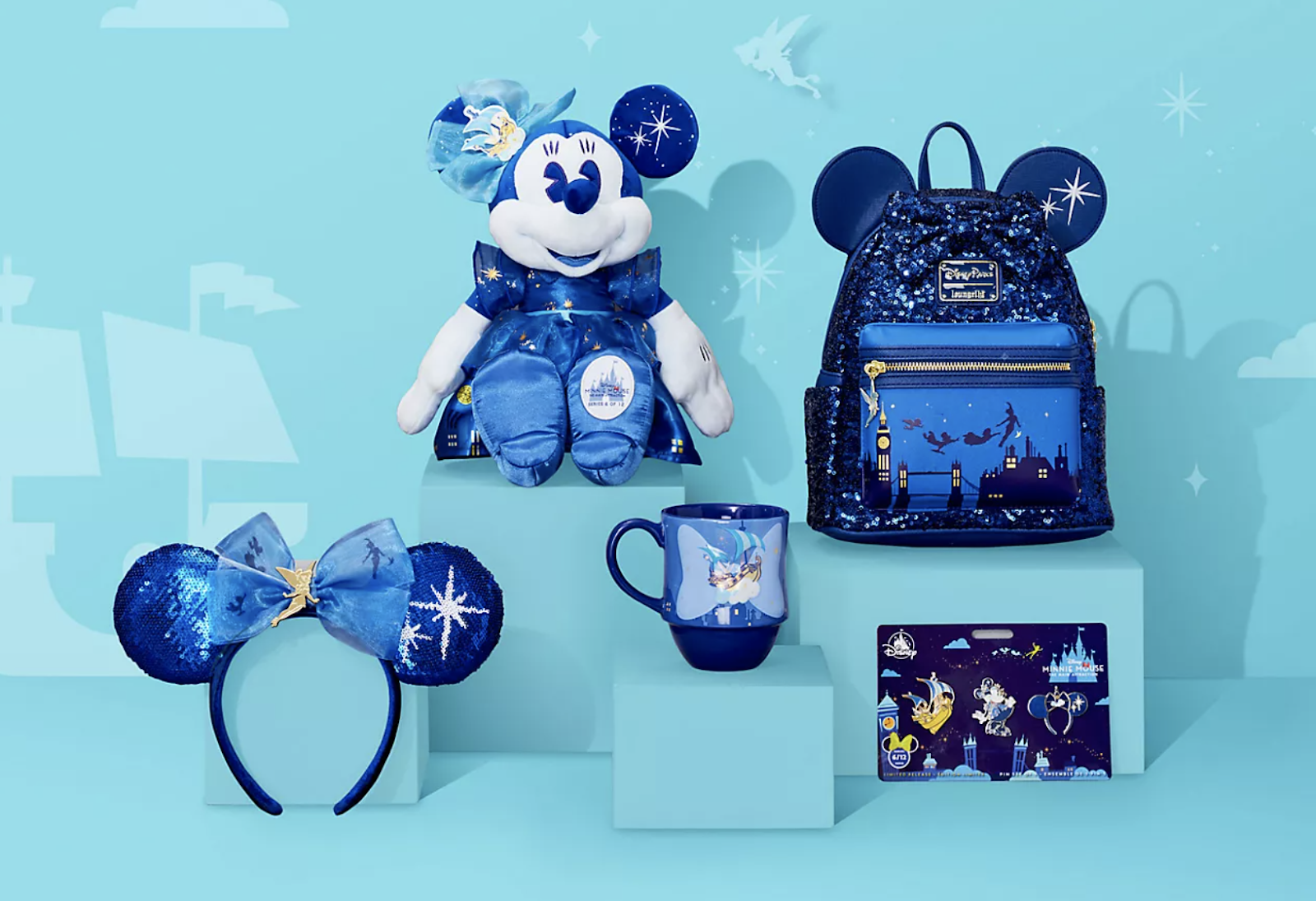 With a little faith, trust, and pixie dust, even Minnie Mouse can take to the skies! Dream of Neverland and the charming Peter Pan’s Flight attraction with this collection that features rich royal blues and brilliant white stars. Adding to the magic is the London skyline which is showcased on the backpack and Minnie’s dress.