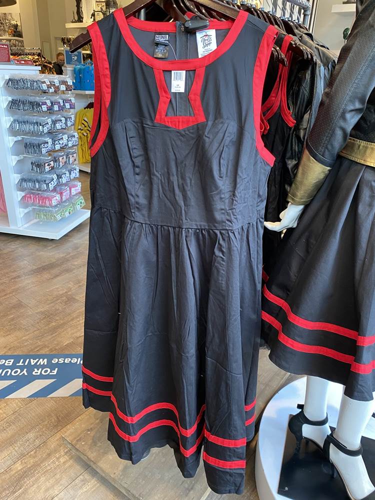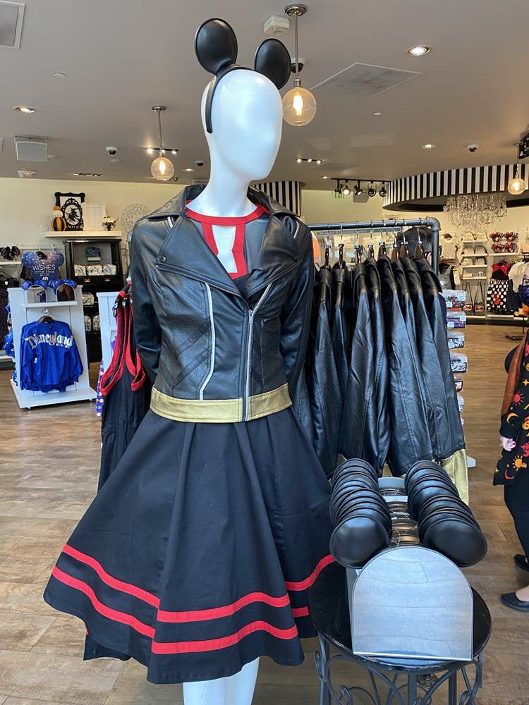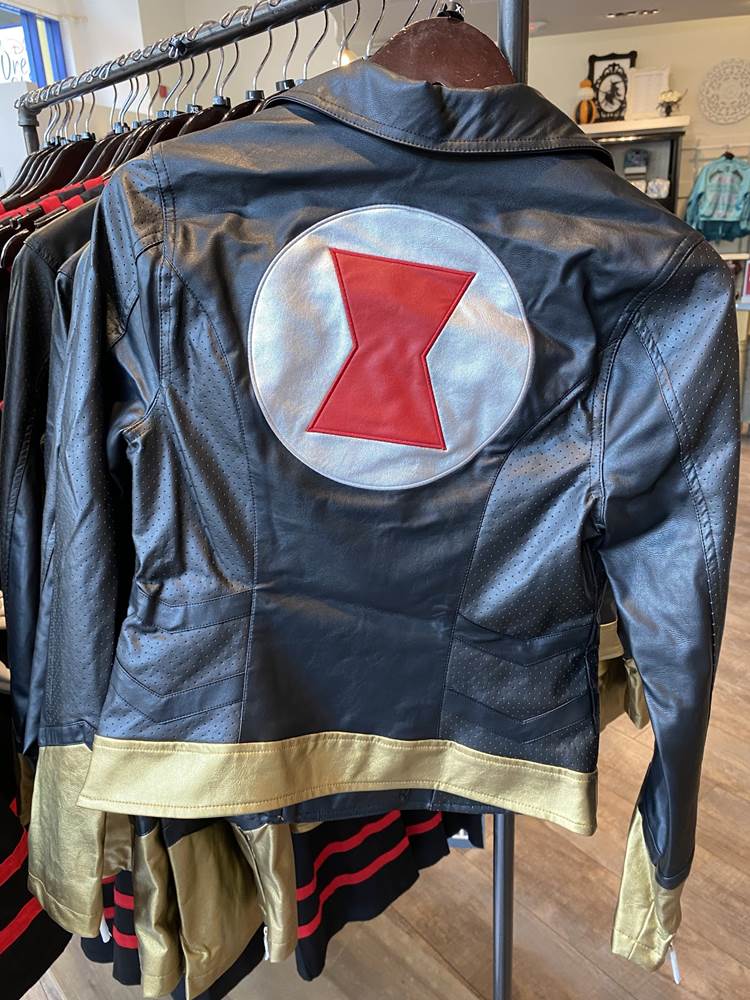 New Black Widow merchandise that we spotted a few days ago at Walt Disney World’s Disney Springs has also made its way to the west coast. This Black Widow jacket and dress were found at the Disney Dress Shop.