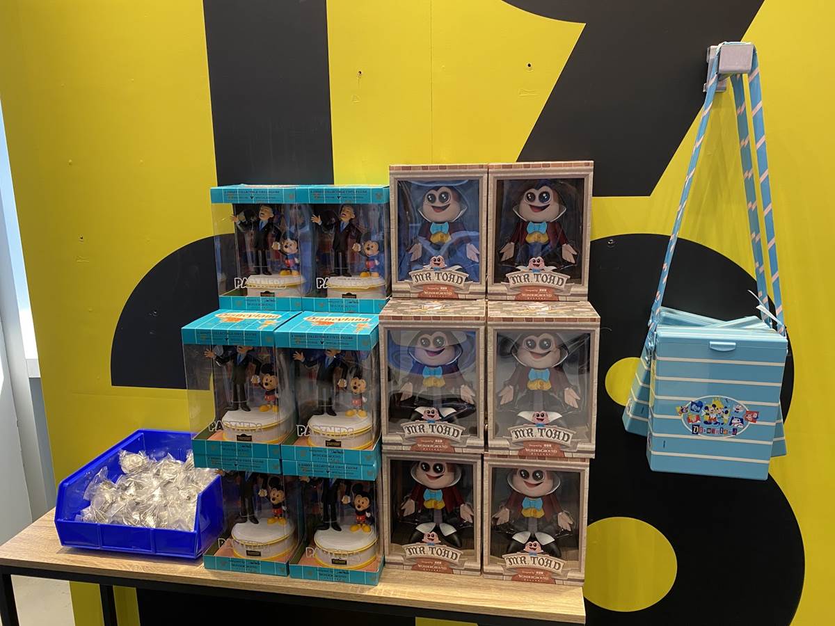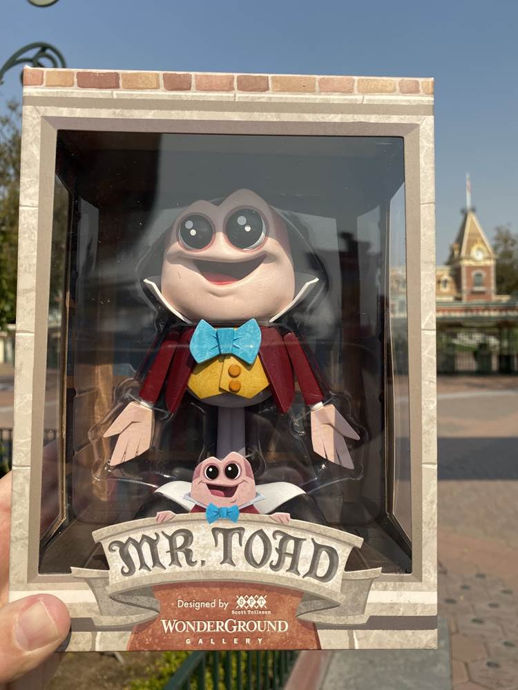 Despite the Wonderground Gallery being transformed into the Star Wars Trading Post, the merchandise event we went to experience at the former ESPN Zone was primarily for vinyl figures by Wonderground Artists Dave Perillo and Scott Tolleson. Perillo’s figure is a stylized version of Blaine Gibson’s “Partners” statue found at the end of Main Street USA that features Walt and Mickey Mouse holding hands. Tolleson’s piece is a highly-stylized J. Thaddeus Toad, Esq. as he appears in his signature opening day attraction, Mr. Toad’s Wild Ride. Both figures were $29.99 each.