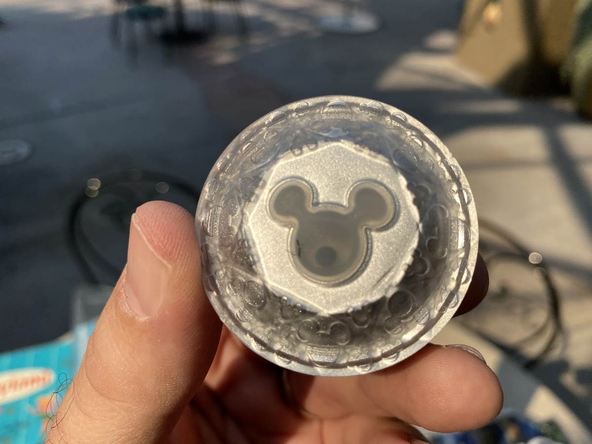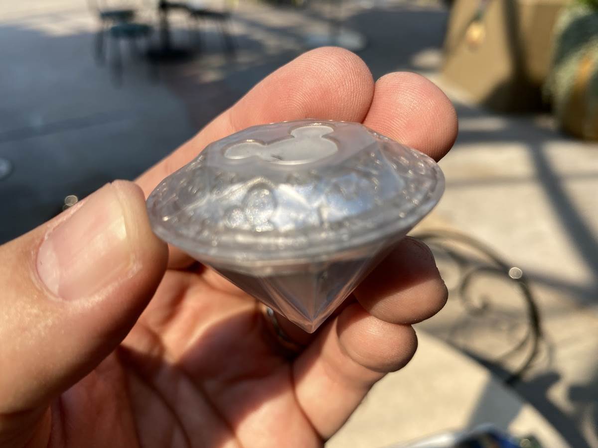 Also at the former ESPN Zone were the opportunities to purchase a souvenir popcorn bucket that looks remarkably like retro popcorn boxes available in the park long ago, but with newer iconography and not made of cardboard but rather, a durable (and latching) plastic. There were also diamond-shaped glow cubes available, likely to be made available in beverage offerings in the park as part of the anniversary festivities that never occurred due to the park’s extended closure.