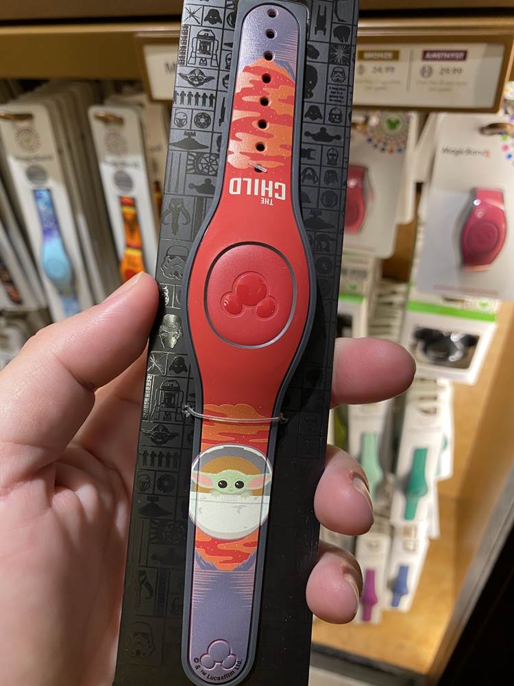 - Aside from the action figures, you can also find some Star Wars MagicBands, a blue one featuring a Rebel helmet, as well as the Rebel Alliance logo and an X-wing. Something for someone who prefers things a little more on the dark side, a red First Order MagicBand featuring the First Order logo, and says “709 Red Fury” on one side. The one MagicBand that we’re sure everyone will love is a red MagicBand featuring The Child from the smash-hit Disney+ original series, The Mandalorian, floating in his pram.