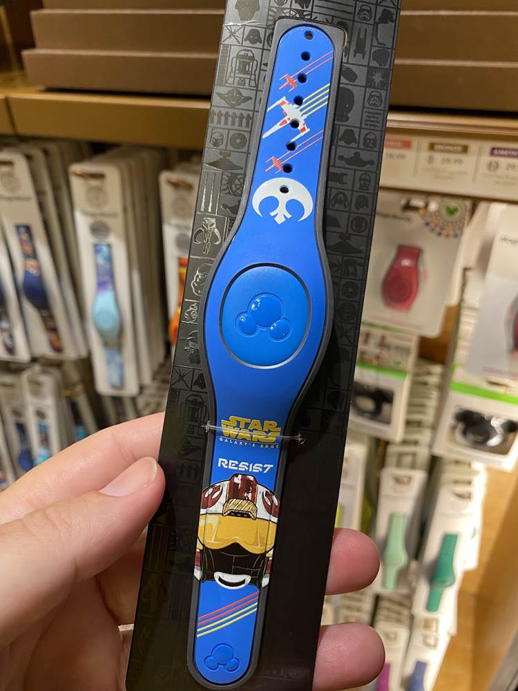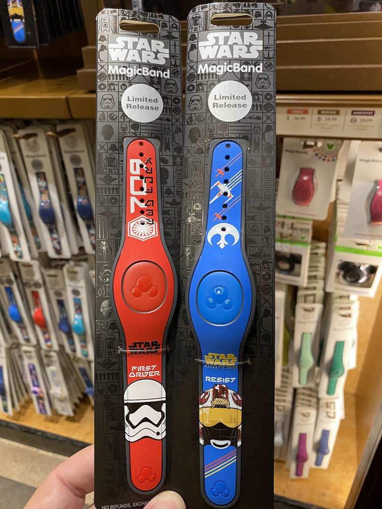 - Aside from the action figures, you can also find some Star Wars MagicBands, a blue one featuring a Rebel helmet, as well as the Rebel Alliance logo and an X-wing. Something for someone who prefers things a little more on the dark side, a red First Order MagicBand featuring the First Order logo, and says “709 Red Fury” on one side. The one MagicBand that we’re sure everyone will love is a red MagicBand featuring The Child from the smash-hit Disney+ original series, The Mandalorian, floating in his pram.
