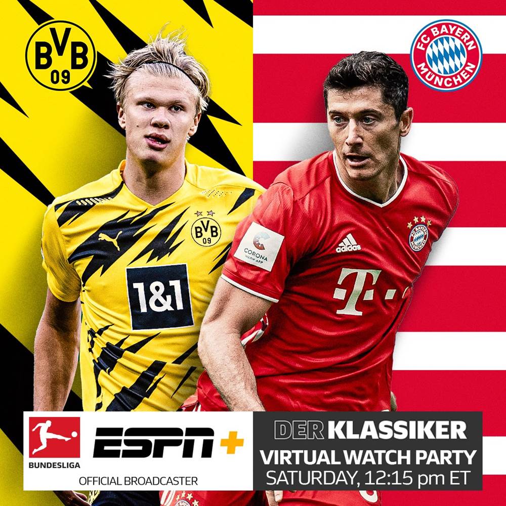 - In addition to the virtual watch party, ESPN+ will provide extensive coverage of the first Der Klassiker of the 2020-21 Bundesliga season.