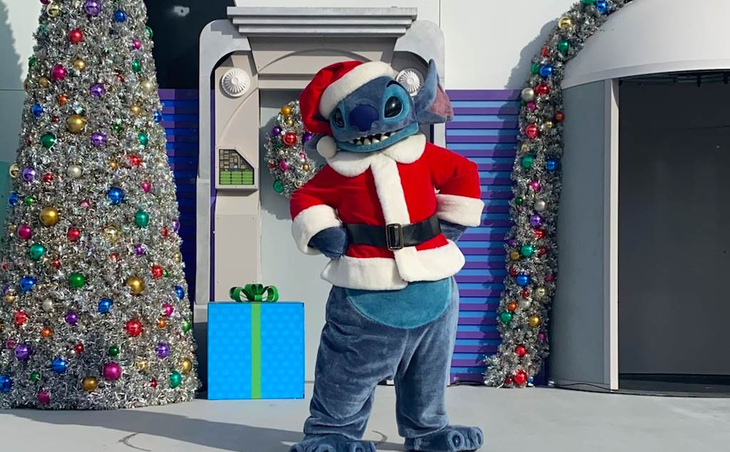 - Characters, like Stitch in his Santa outfit, will pop up all around the park for socially-distanced meet and greets.