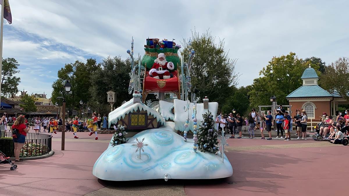 - While beloved characters like Mickey, Goofy and Clarabelle are featured in these cavalcades, the real centerpiece is of course Santa Claus himself.