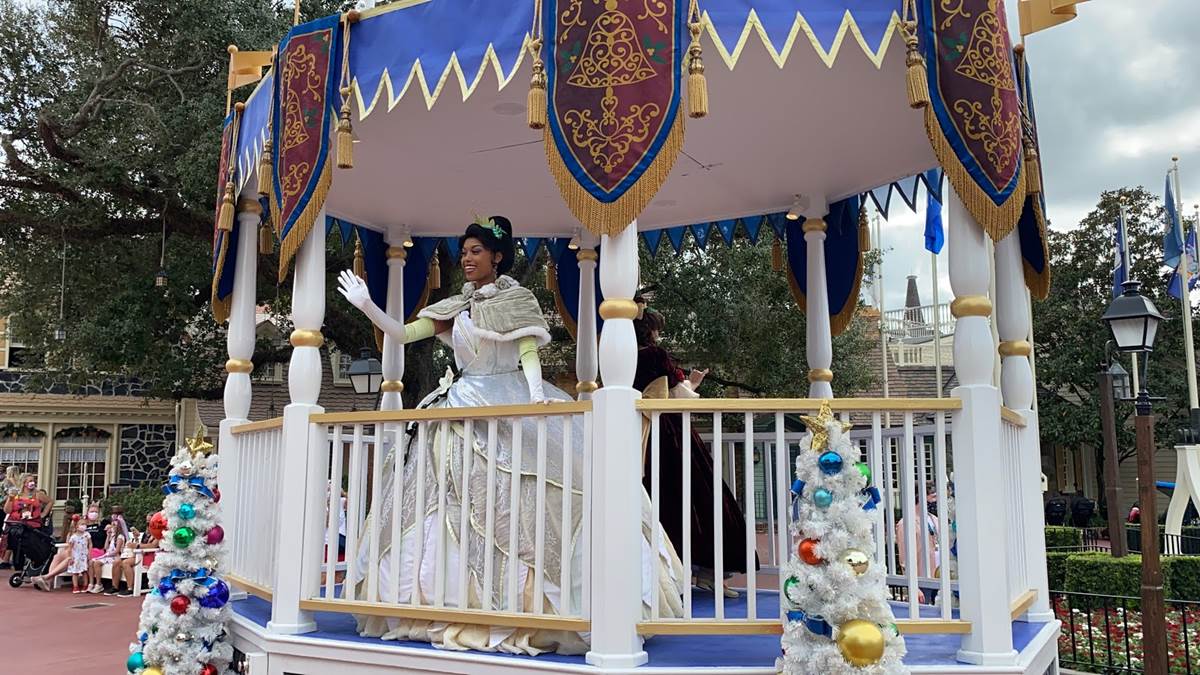 - Even the Disney Princess cavalcade has been given a holiday touch, with each princess sporting their winter outfits and some modifications to their usual float.