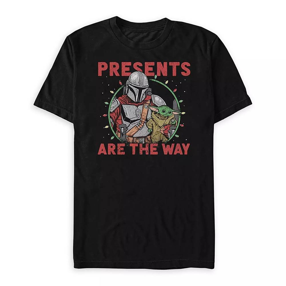 Star Wars: The Mandalorian ''Presents Are the Way'' T-Shirt for Men ($24.99) - “The Child, who's also known as ''Baby Yoda,'' is coupled here with cheer-filled twist on the credo of the Mandalorians. ''Presents are the way'' is the festive message on this holiday tee for men inspired by Star Wars: The Mandalorian.”