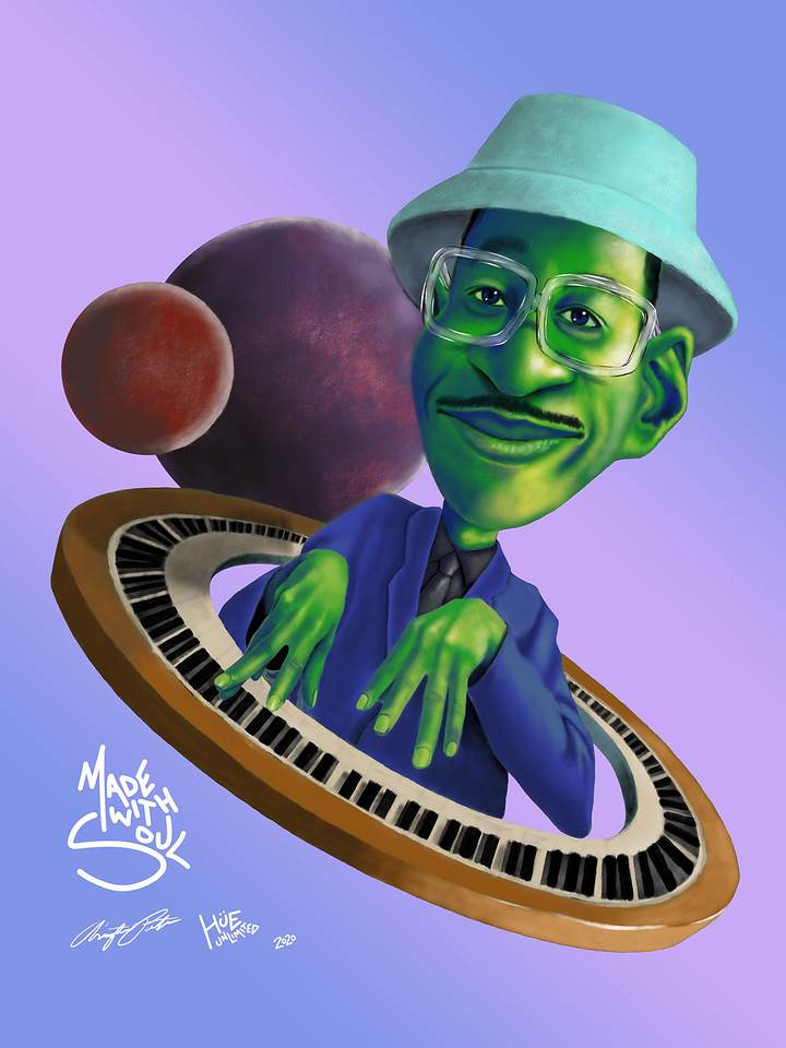 - Arrington in his own words, describes his inspiration: “Creating artwork for this collection was an awesome experience! As an artist, I found myself connected to the film, relating back to a familiar place within my own love for music and being in constant pursuit of my dreams. Outside of being a visual artist, I too am a pianist - so I related to Joe's character on a more personal level.”
