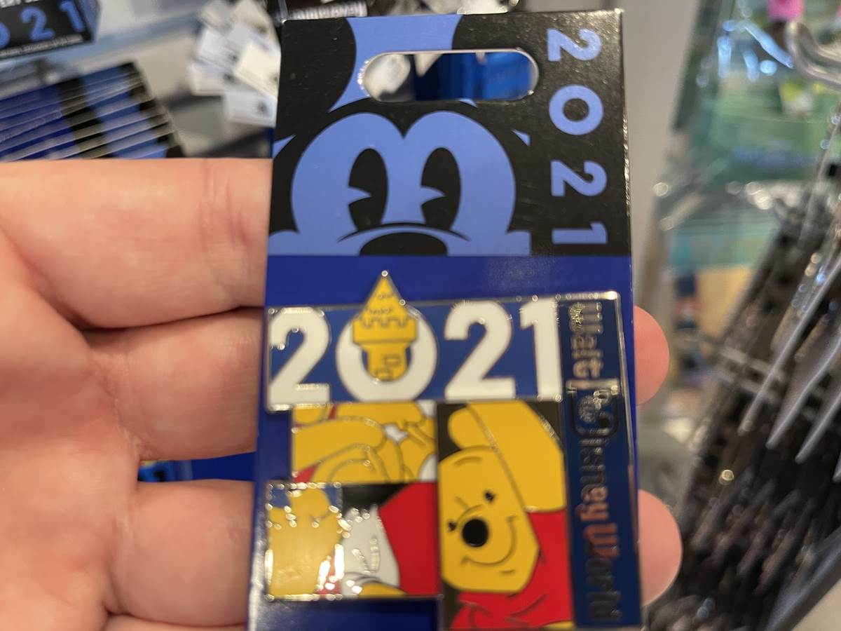 This spinner pin has Mickey, Minnie, Donald, Daisy and goofy around a fixed 2021 in the center.