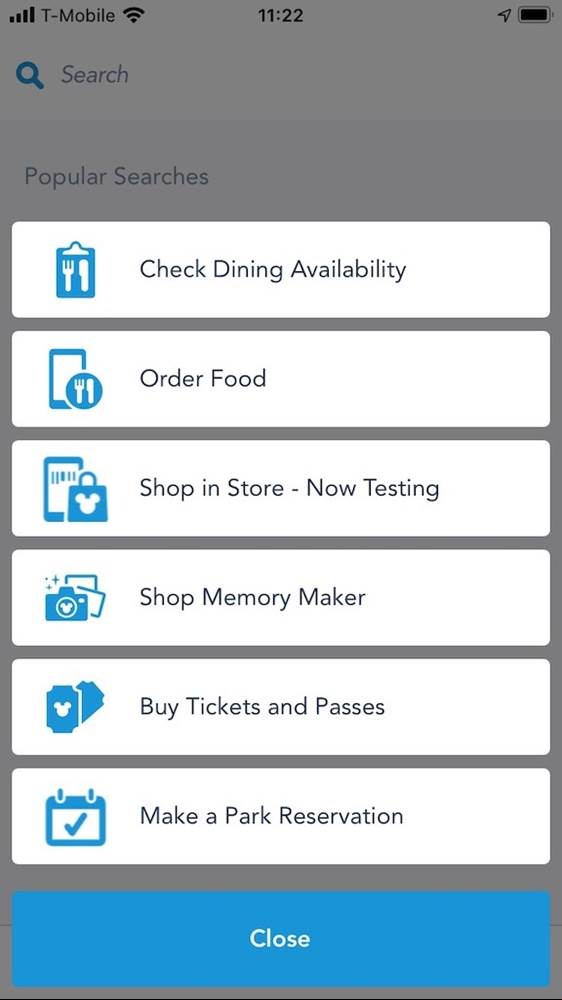 - To access Merchandise Mobile Checkout, guests will open the My Disney Experience App on their smartphone/mobile device and then press the Plus icon at the bottom middle of the screen to bring up popular app destinations.
