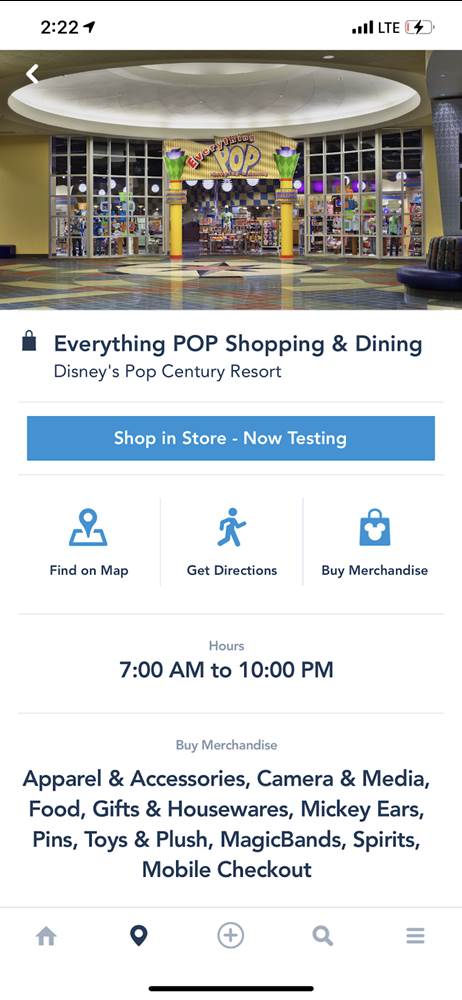 Disney’s new Merchandise Mobile Checkout offering is now being tested at Everything POP Shopping and Dining in Disney’s POP Century Resort. This news comes after the service began testing at the Disneyland Resort and later made its way to EPCOT. Guests can access the shopping option through the My Disney Experience app.