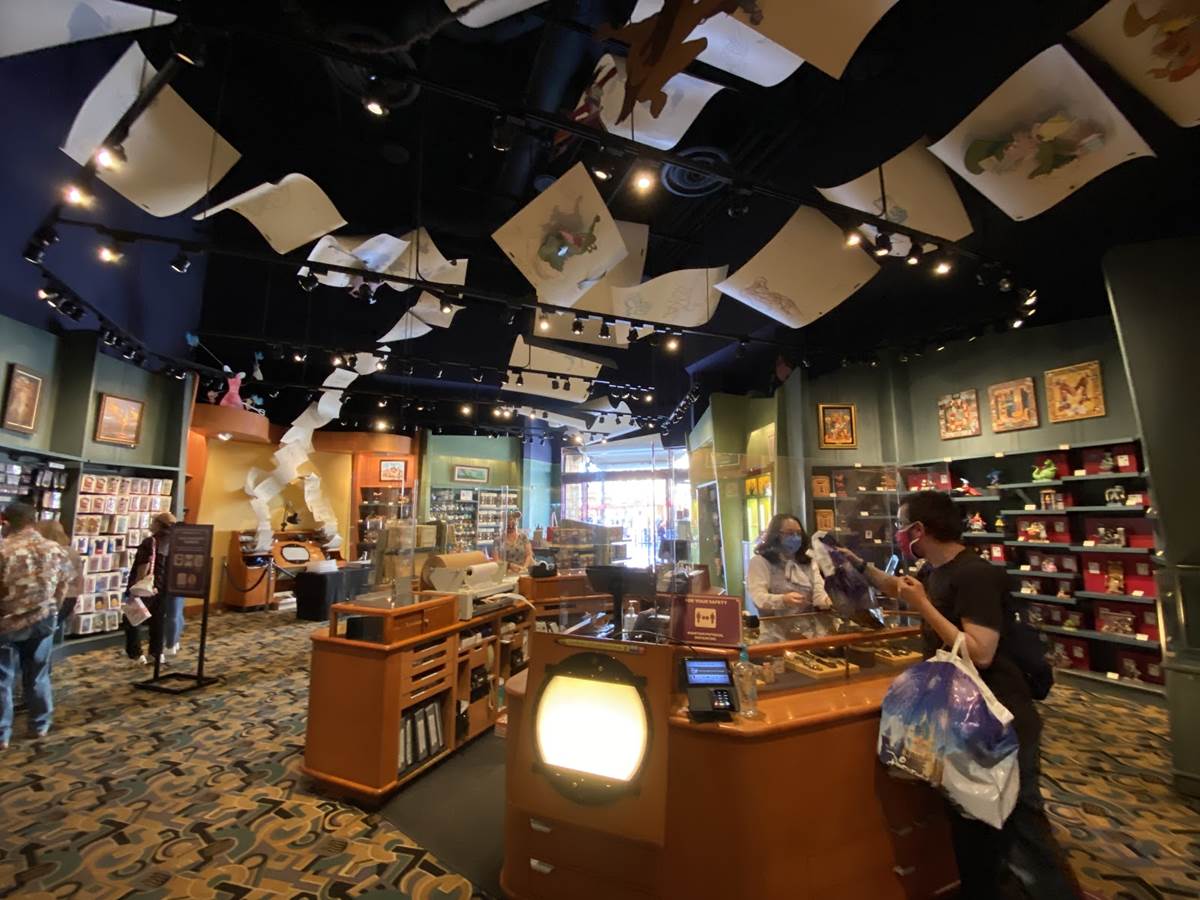 The checkout counter has been updated with plexiglass barriers, as is now common practice at Downtown Disney.