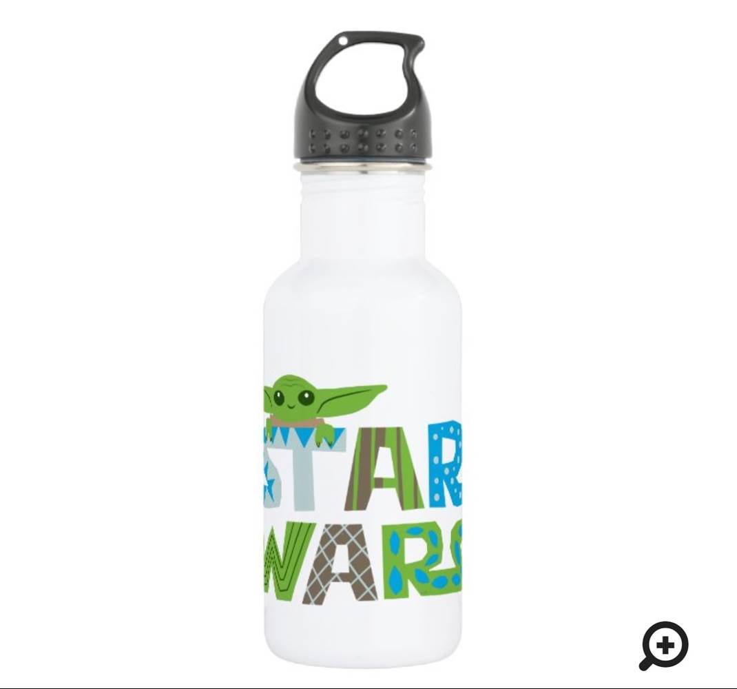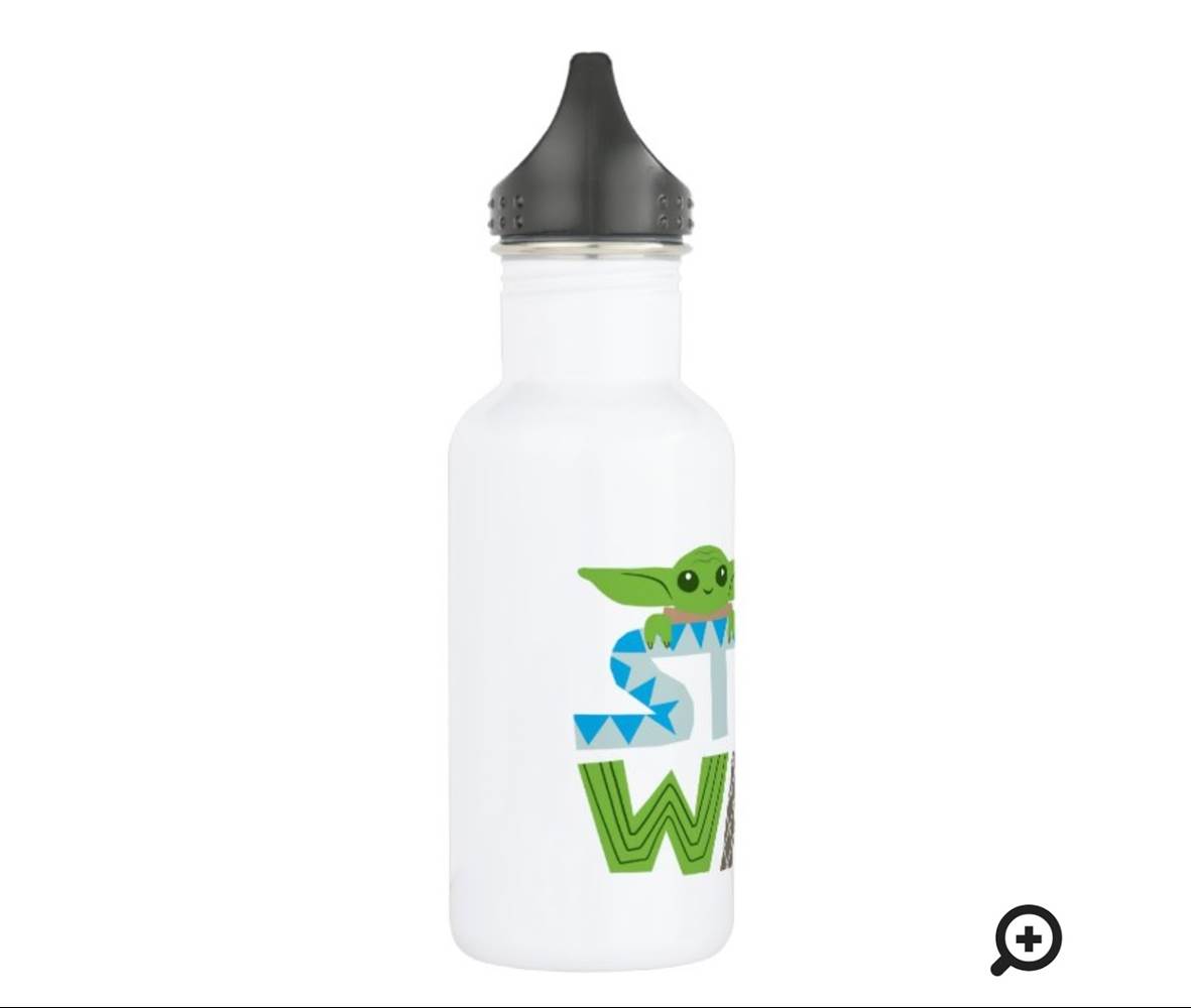 Cute Stylized Star Wars Logo With The Child Stainless Steel Water Bottle ($21.95) - “Drink more water. Your skin, hair, body, and mind will thank you. And now, drink out of a fully customizable water bottle and your sense of style will thank you as well. Dang, hydration never looked so good!”