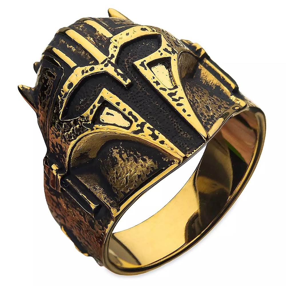 Armorer Ring by RockLove – Star Wars: The Mandalorian ($85.99) - “Plated in antiqued yellow gold, this sculpted sterling silver ring of the Armorer pays homage to the mysterious and enigmatic blacksmith from Star Wars: The Mandalorian. This lightweight, striking ring features a message along the band: ''This is the way.''”