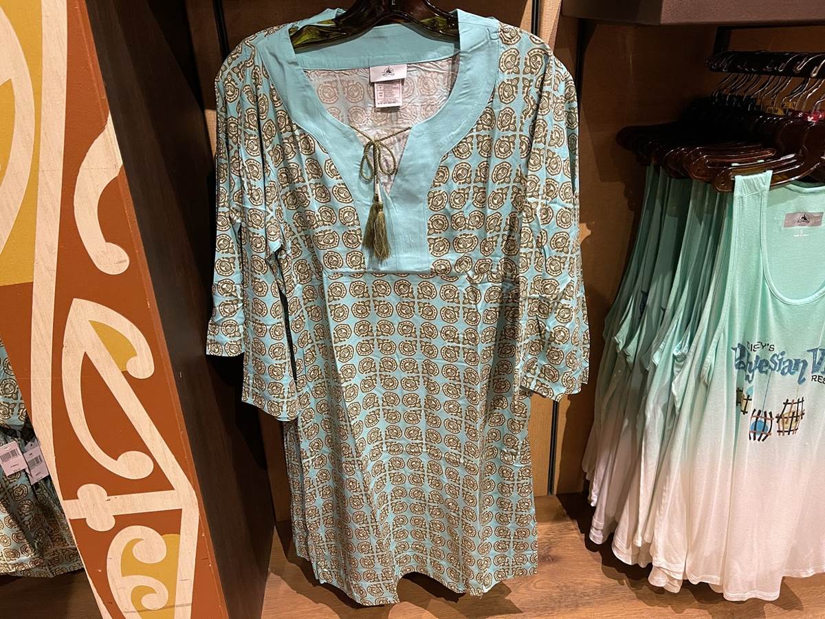 There are also three options featuring the same textile pattern of Maui in a quad design throughout. There is a tunic option, with a light blue collar as well as a sleeveless top with the same collar. The design is also carried over to a men’s button down shirt. The Tunic is available for $69.99, the Sleeveless Top for $49.99, and Button Down for $39.99