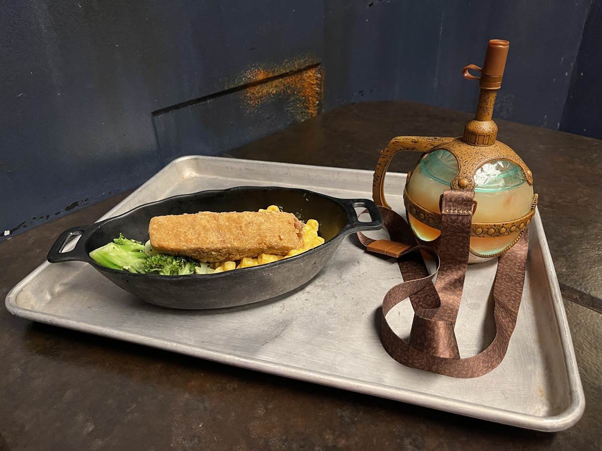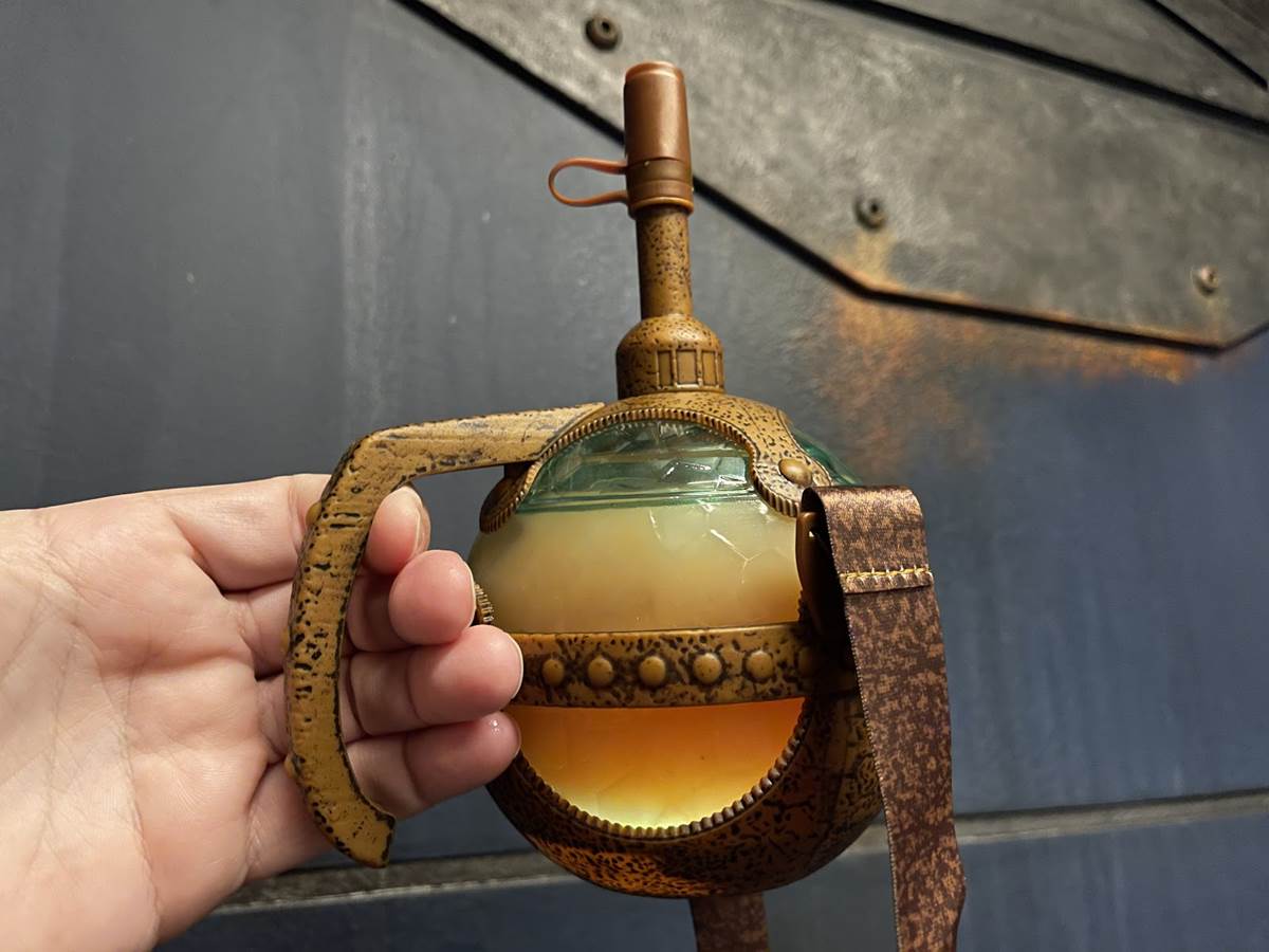All joking aside, a new themed sipper is now available in Star Wars: Galaxy’s Edge at Disney’s Hollywood Studios in Walt Disney World. Priced at $15.99 with a fountain drink and $17.49 with Moof Juice (Simply Fruit Punch and Simply Orange with chipotle-pineapple).