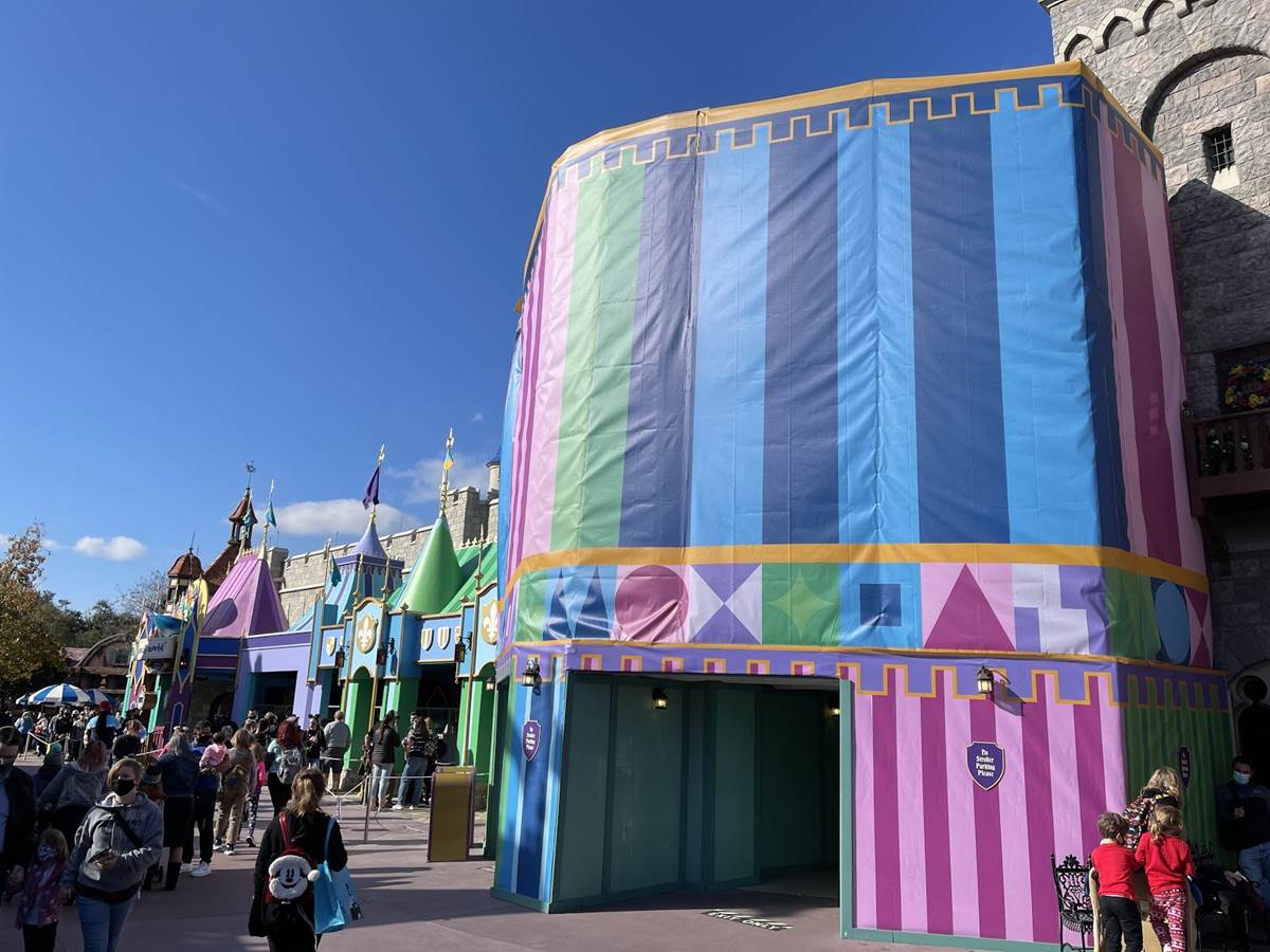 Magic Kingdom’s it’s a small world appears to be in the final phase of its facade refurbishment, a project that started in January of this year. Construction walls and photo scrim are now on the exit to the classic attraction.